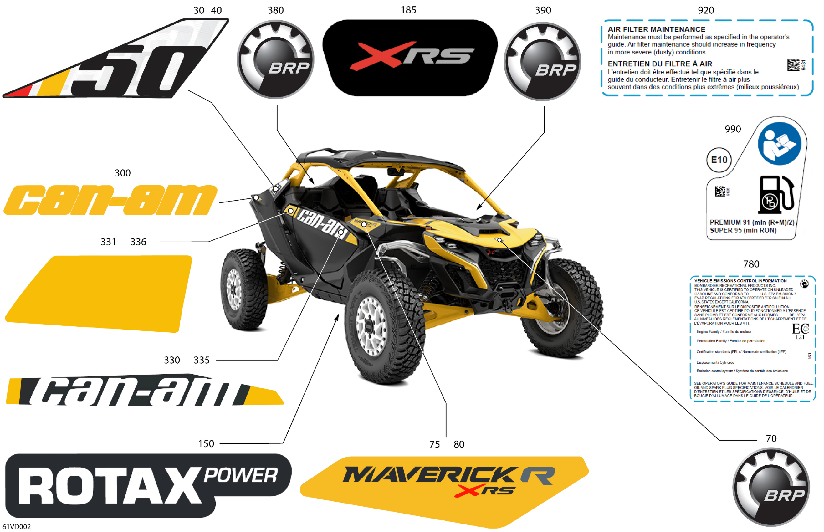 Can-Am Maverick R 996NT - XRS - 7ARB - Neo Yellow - 77" Width, 2024 Body - Decals Diagram