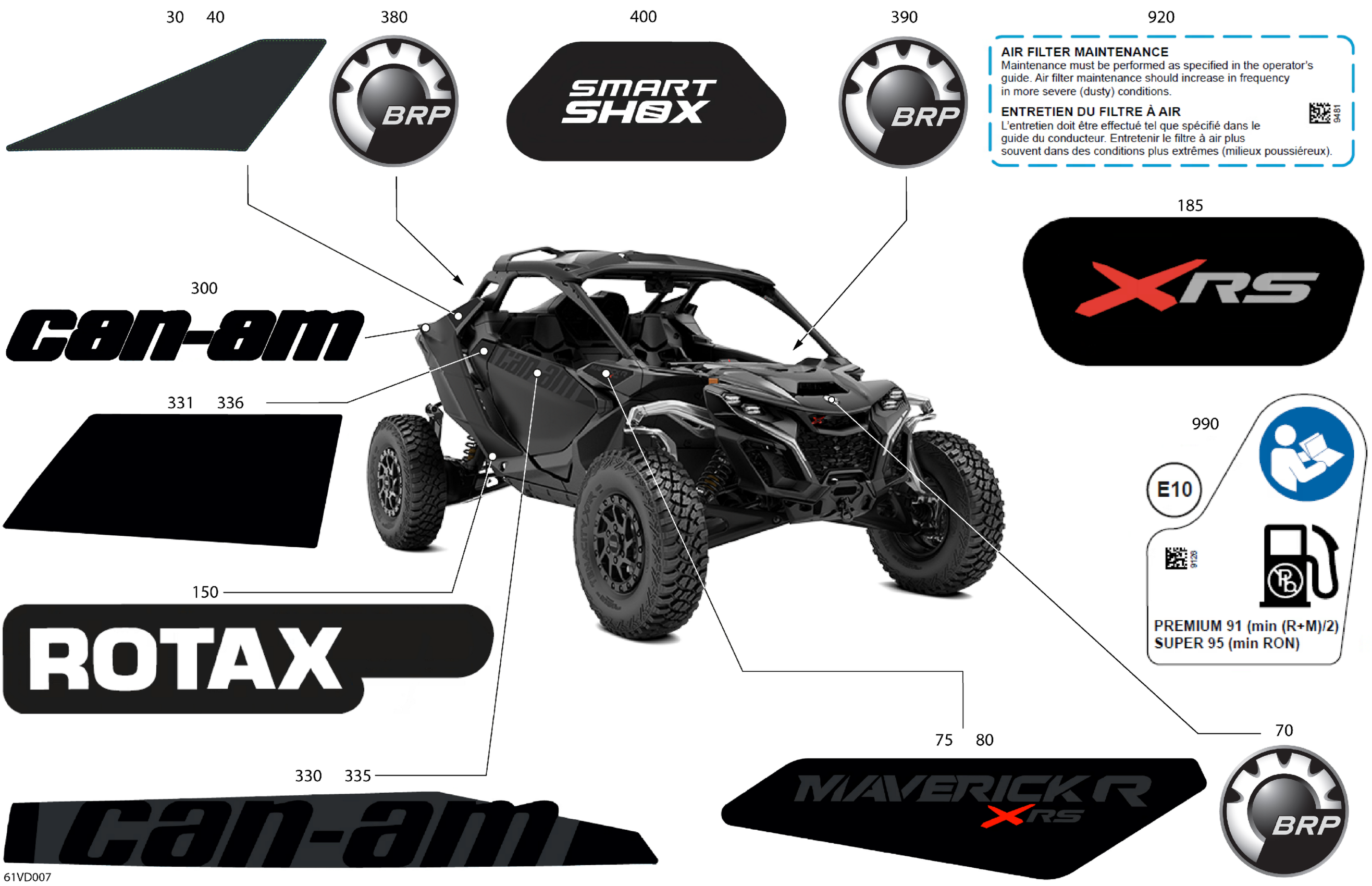 Can-Am Maverick R 996NT - XRS - 7ARG - Timeless Black Metallic - 77" Width SAS CALI, 2024 Body - Decals Diagram