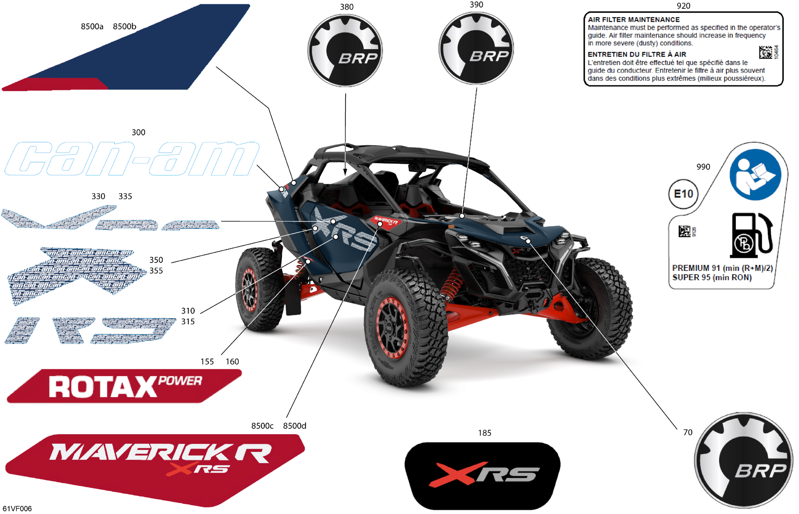 Can-Am Maverick R - 996NT - XRS - 7ATS - Dusty Navy Satin - 77" Width - CALI, 2026 Body - Decals Diagram