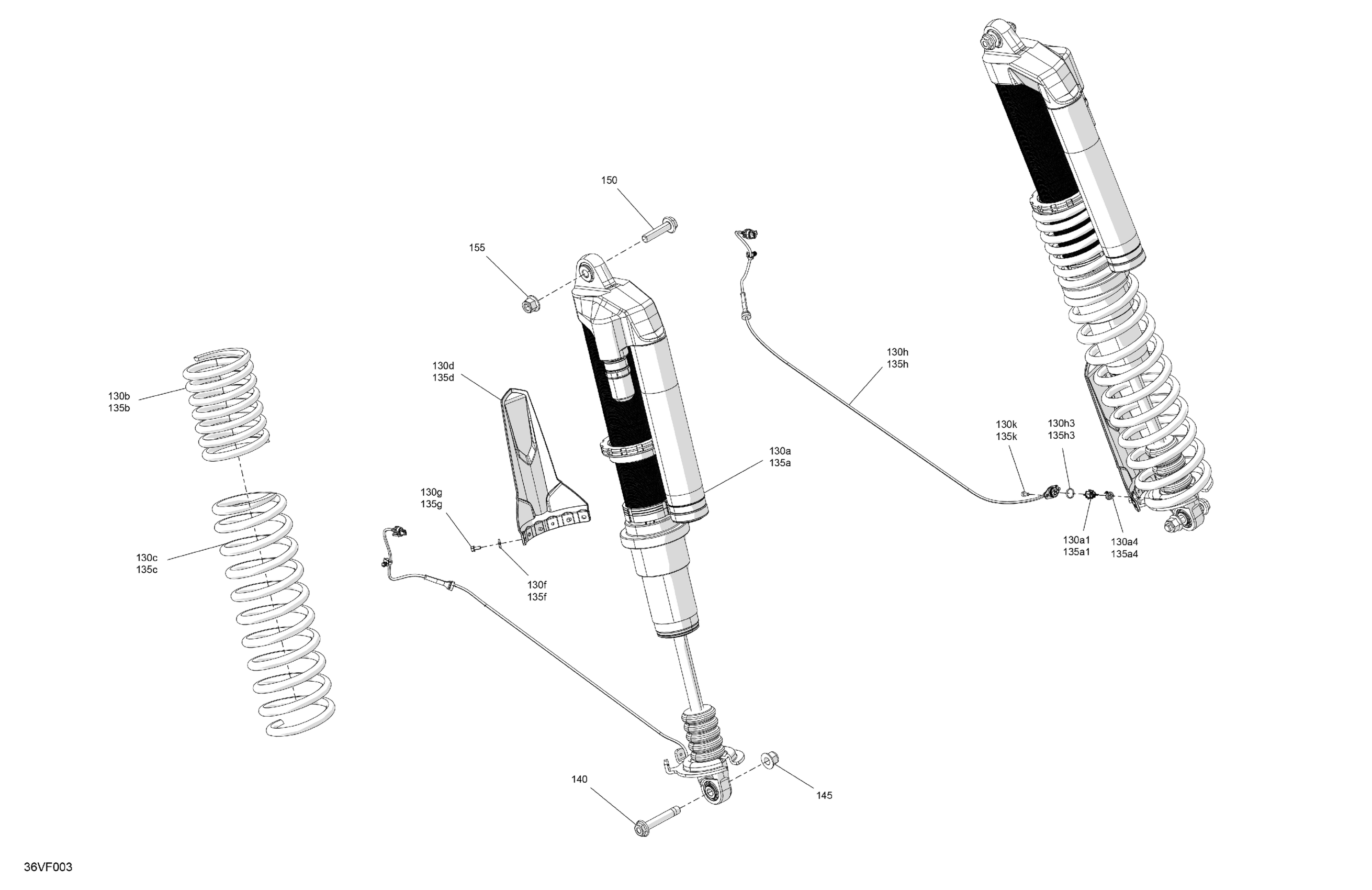 RH Rear Adjustable Shock Absorber | Includes 135a to 135a4