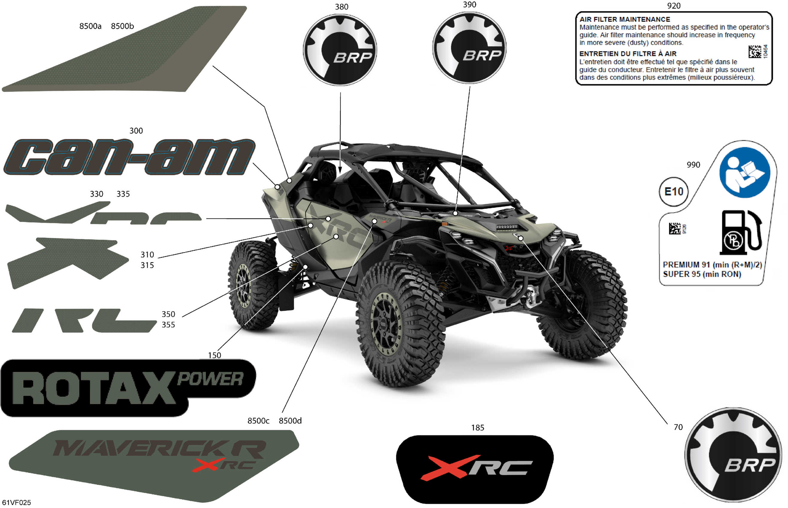 Can-Am Maverick R - 996NT2 - XRC - 7GTF - Loft Green Satin - 77" Width - CALI, 2026 Body - Decals Diagram