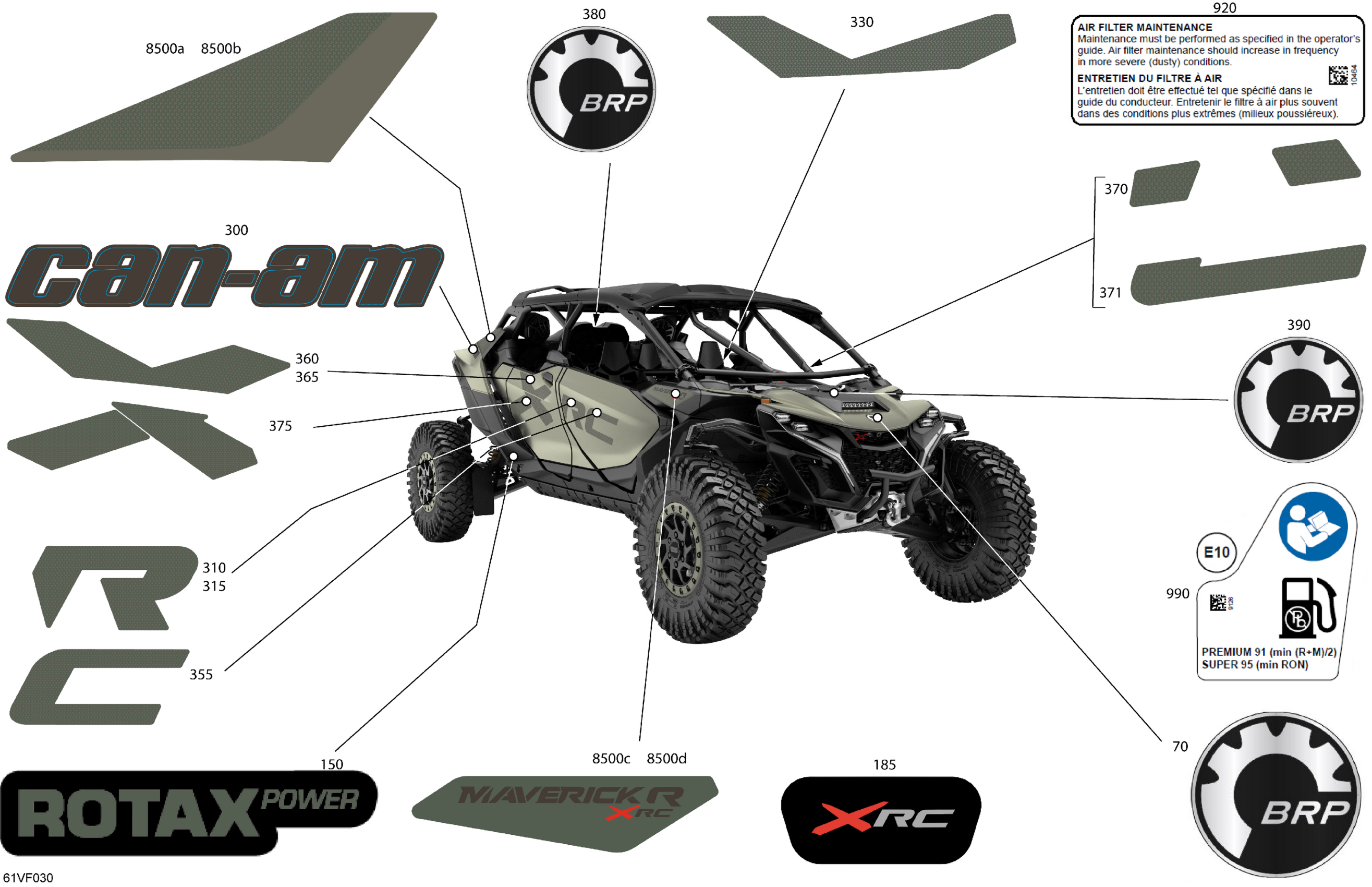 Can-Am Maverick R Max - 996NT2 - XRC - 7JTE - Loft Green Satin - 77" Width - CALI, 2026 Body - Decals Diagram