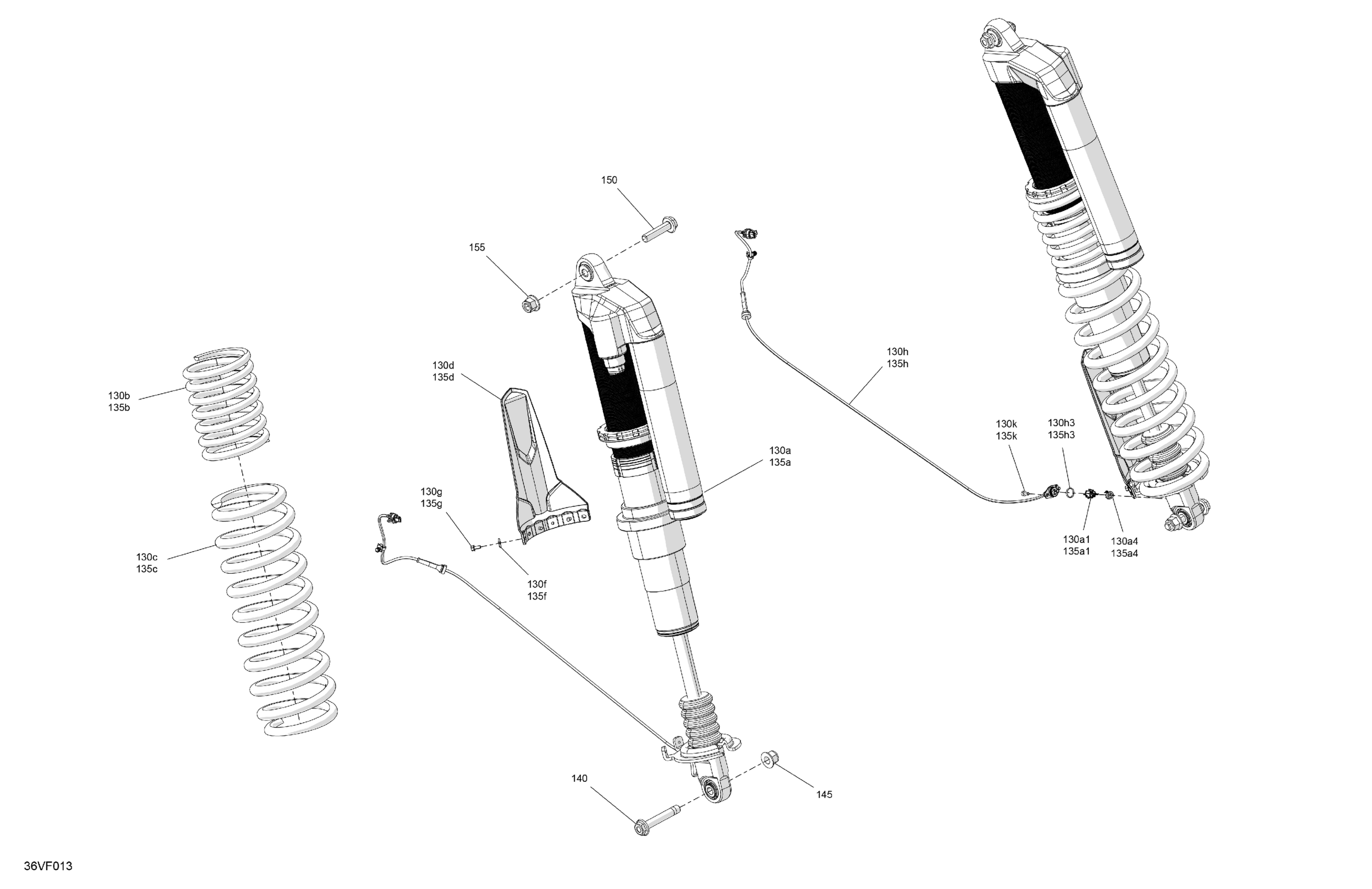 RH Rear Adjustable Shock Absorber | Includes 135a to 135a4