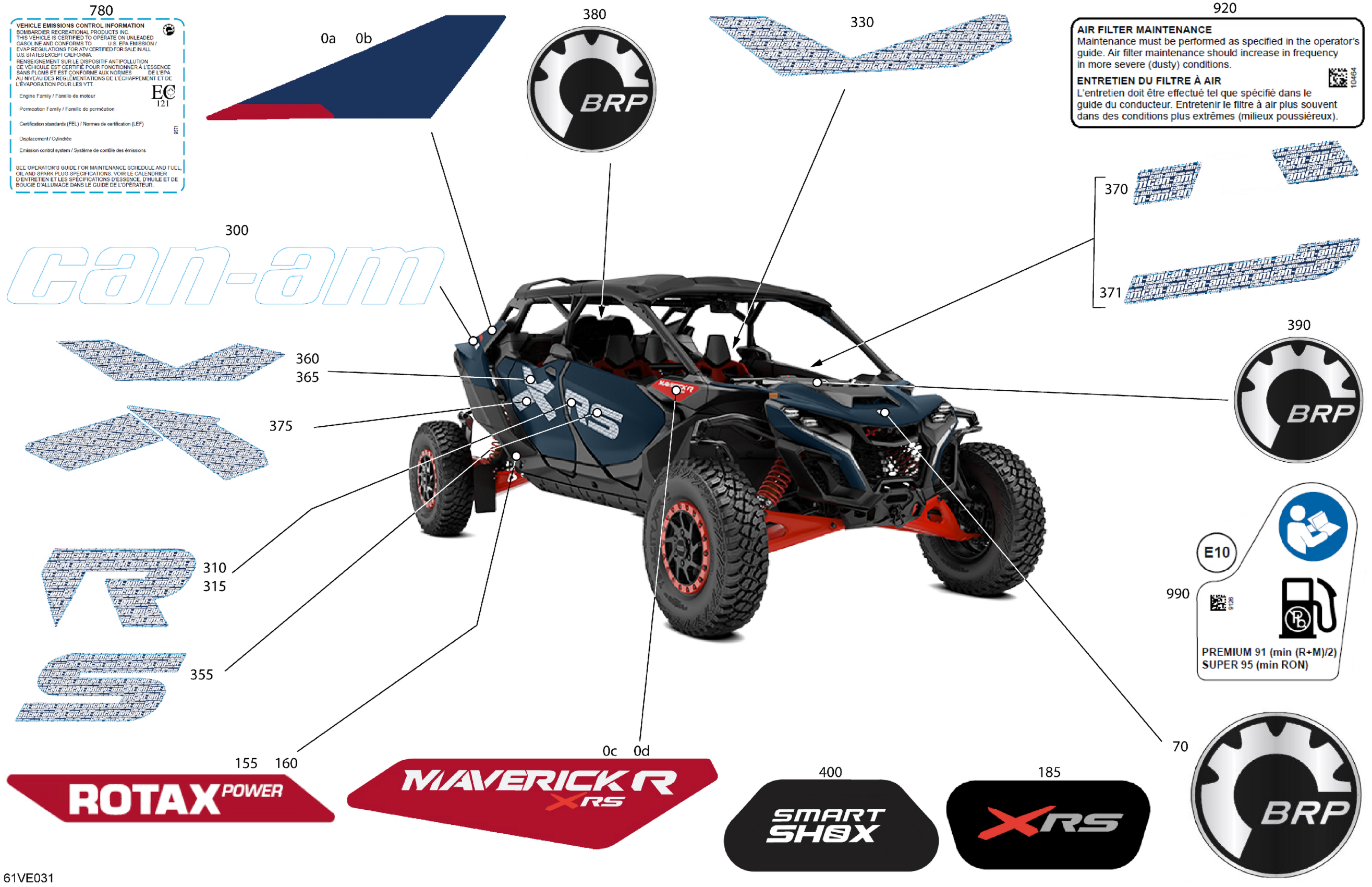 Can-Am Maverick R MAX - 996NT2 - XRS - 7DSW - Dusty Navy - 77" Width, 2025 Body - Decals Diagram