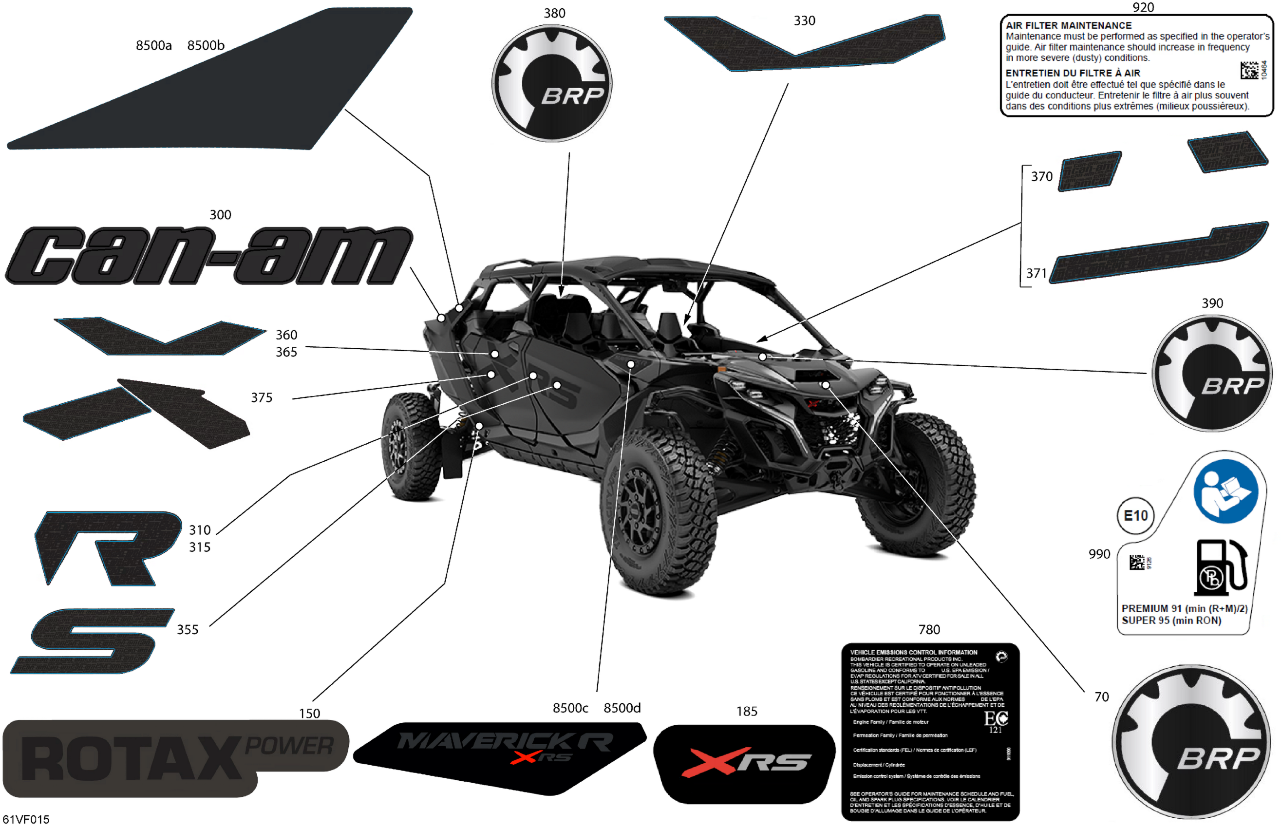 Can-Am Maverick R Max - 996NT2 - XRS - 7DTM - Timeless Black Metallic - 77" Width, 2026 Body - Decals Diagram