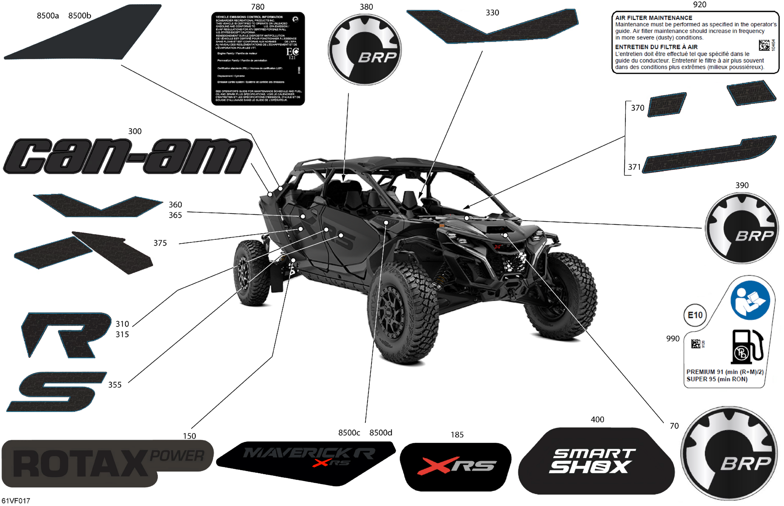 Can-Am Maverick R Max - 996NT2 - XRS SAS - 7DTP - Timeless Black Metallic - 77" Width, 2026 Body - Decals Diagram