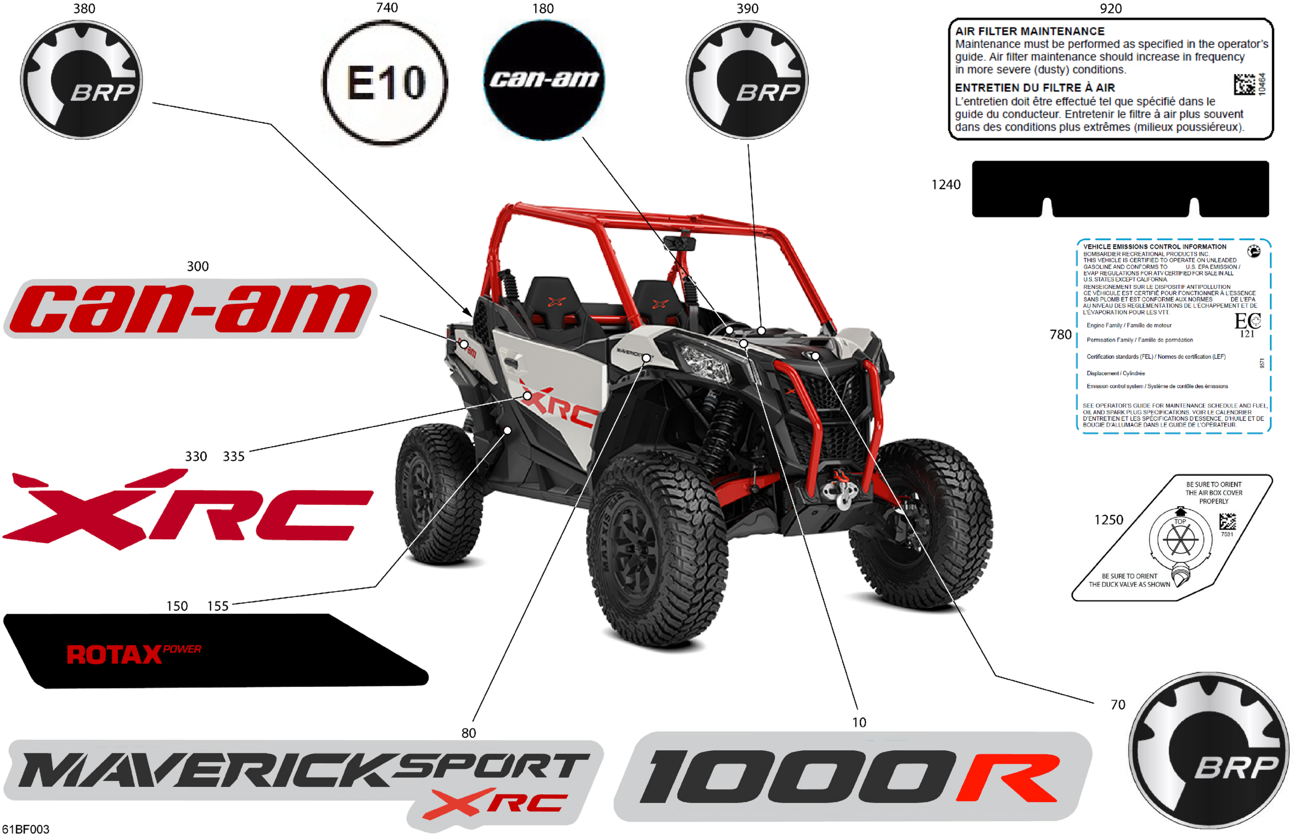 Can-Am Maverick Sport - 1000R EFI - XRC - 7BTB - Hybrid White Pearl - 64" Width, 2026 Body - Decals Diagram