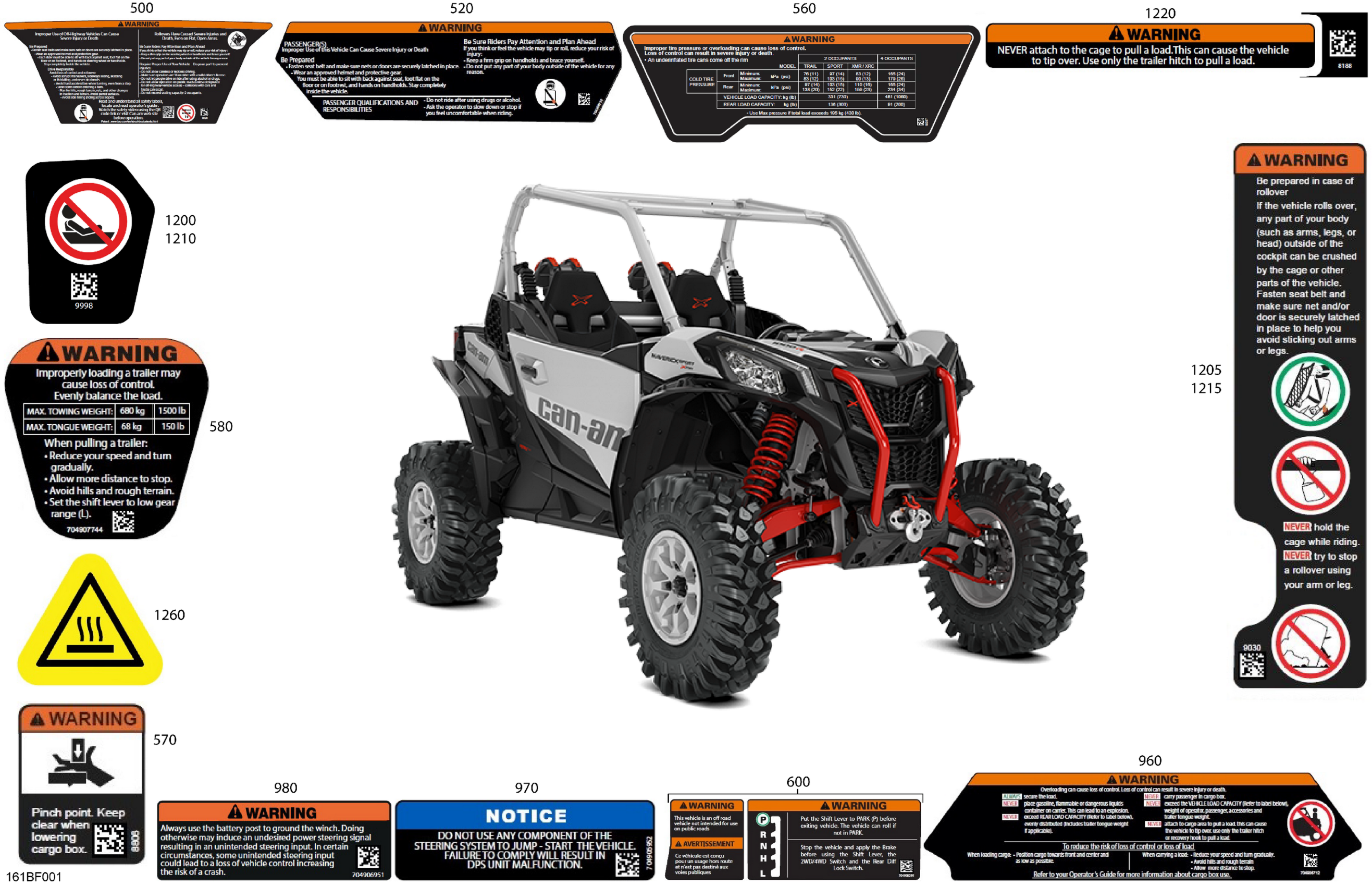Can-Am Maverick Sport - 1000R EFI - XRC - 7BTB - Hybrid White Pearl - 64" Width, 2026 Body - Warning Decals Diagram