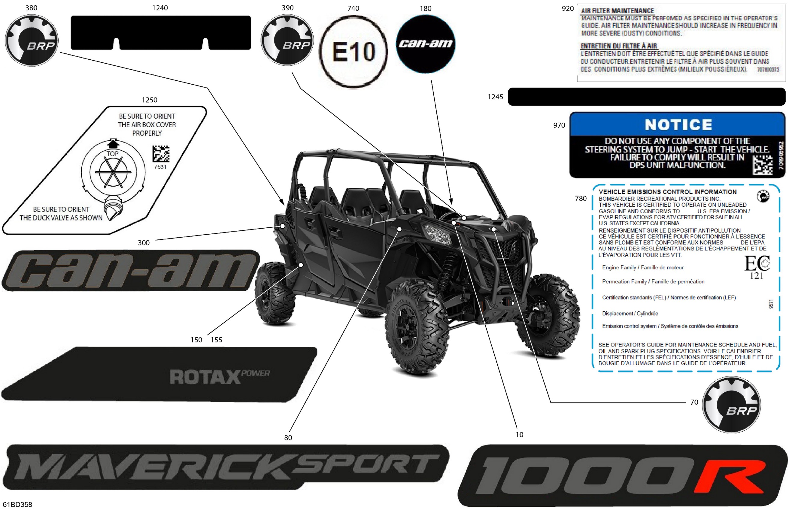 Can-Am North America - Maverick Sport MAX 1000R - DPS - 9JRB - Timeless Black Metallic - 60" Width, 2024 07- Body - Decals Diagram