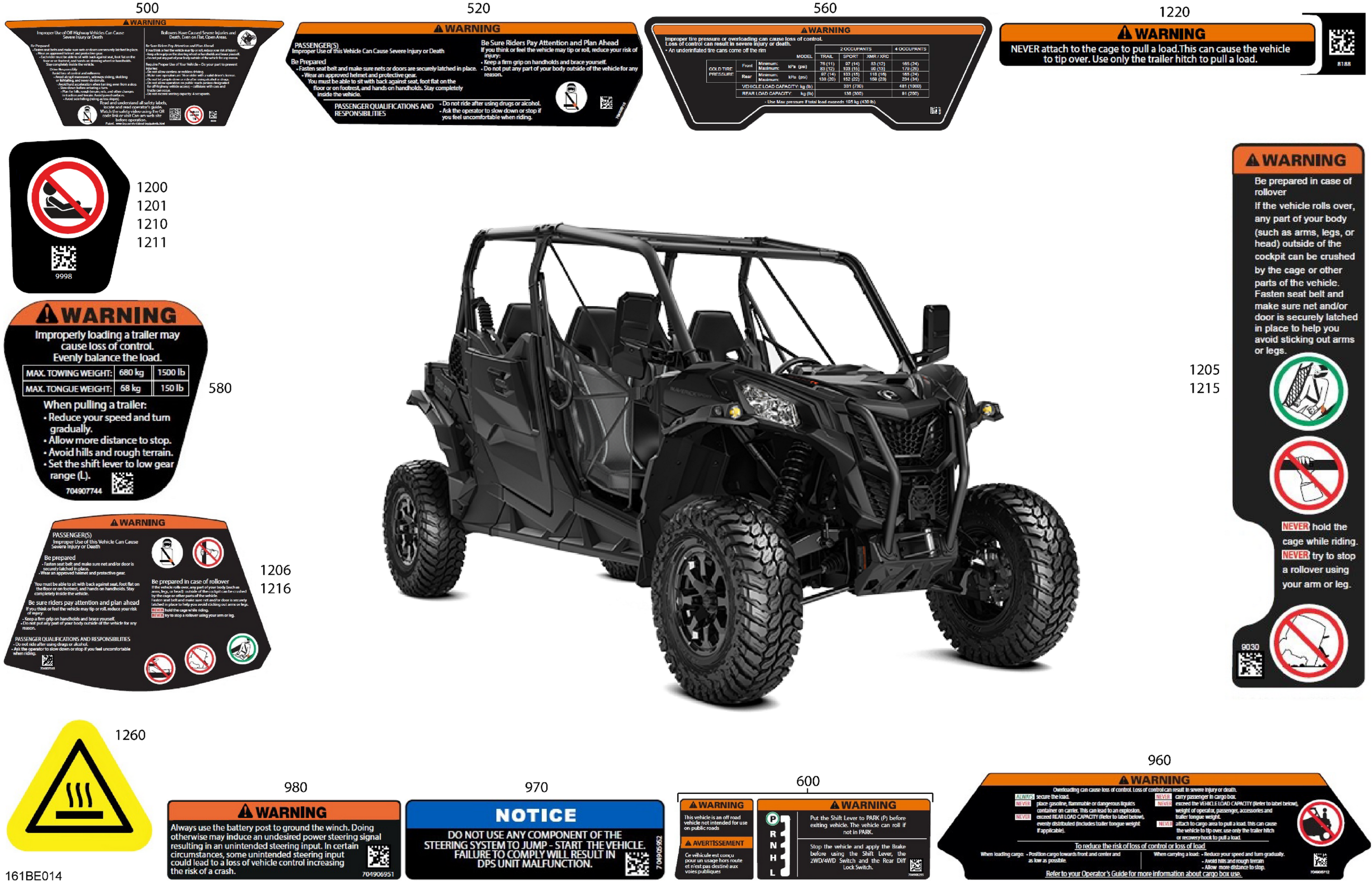 Can-Am Maverick Sport Max - 1000R EFI - DPS - 9JSB - Timeless Black Metallic - 60" Width, 2025 Body - Warning Decals Diagram