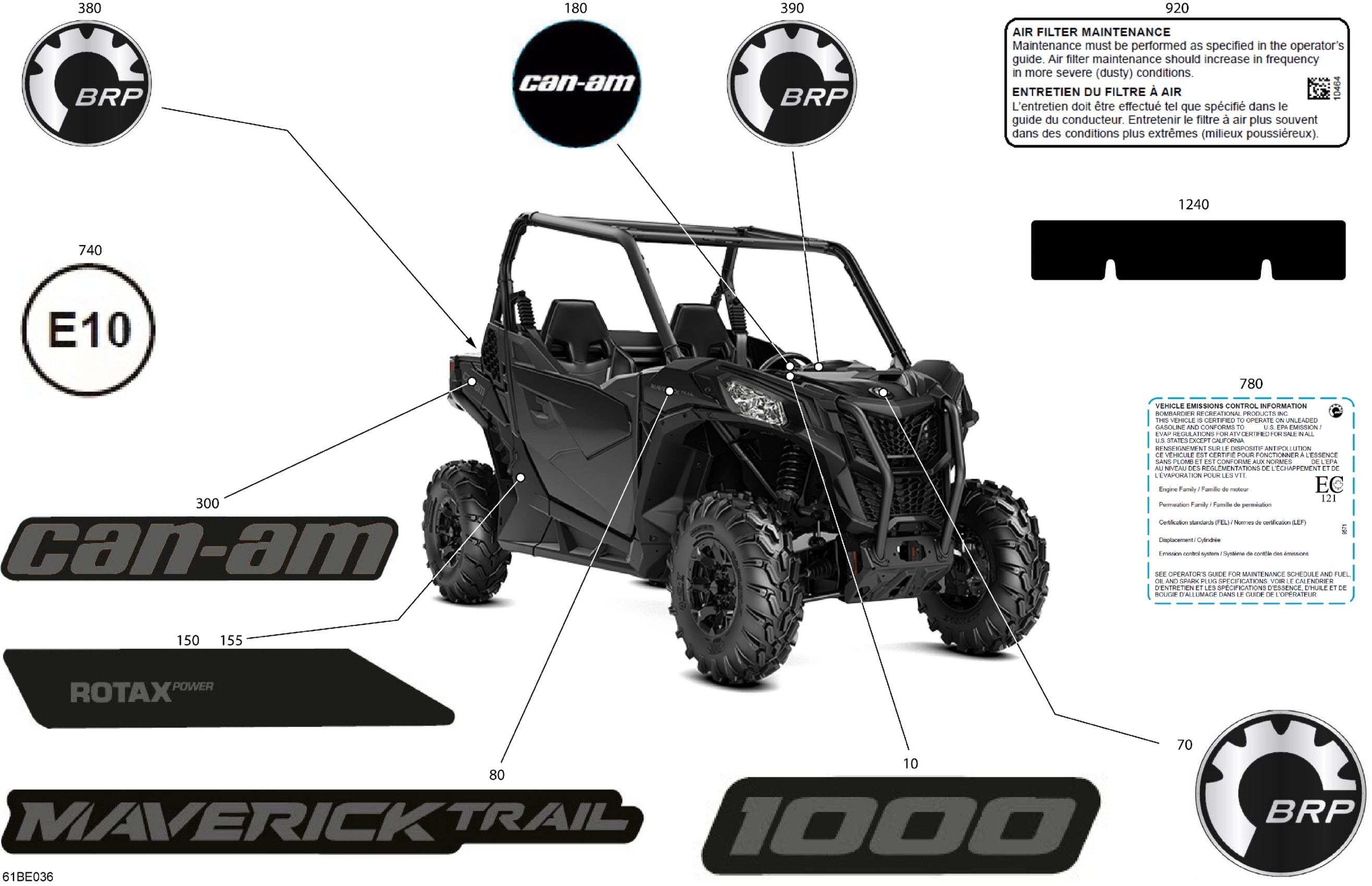 Can-Am Maverick Trail - 1000 - DPS - 7FSB - Timeless Black Metallic - 50" Width, 2025 Body - Decals Diagram