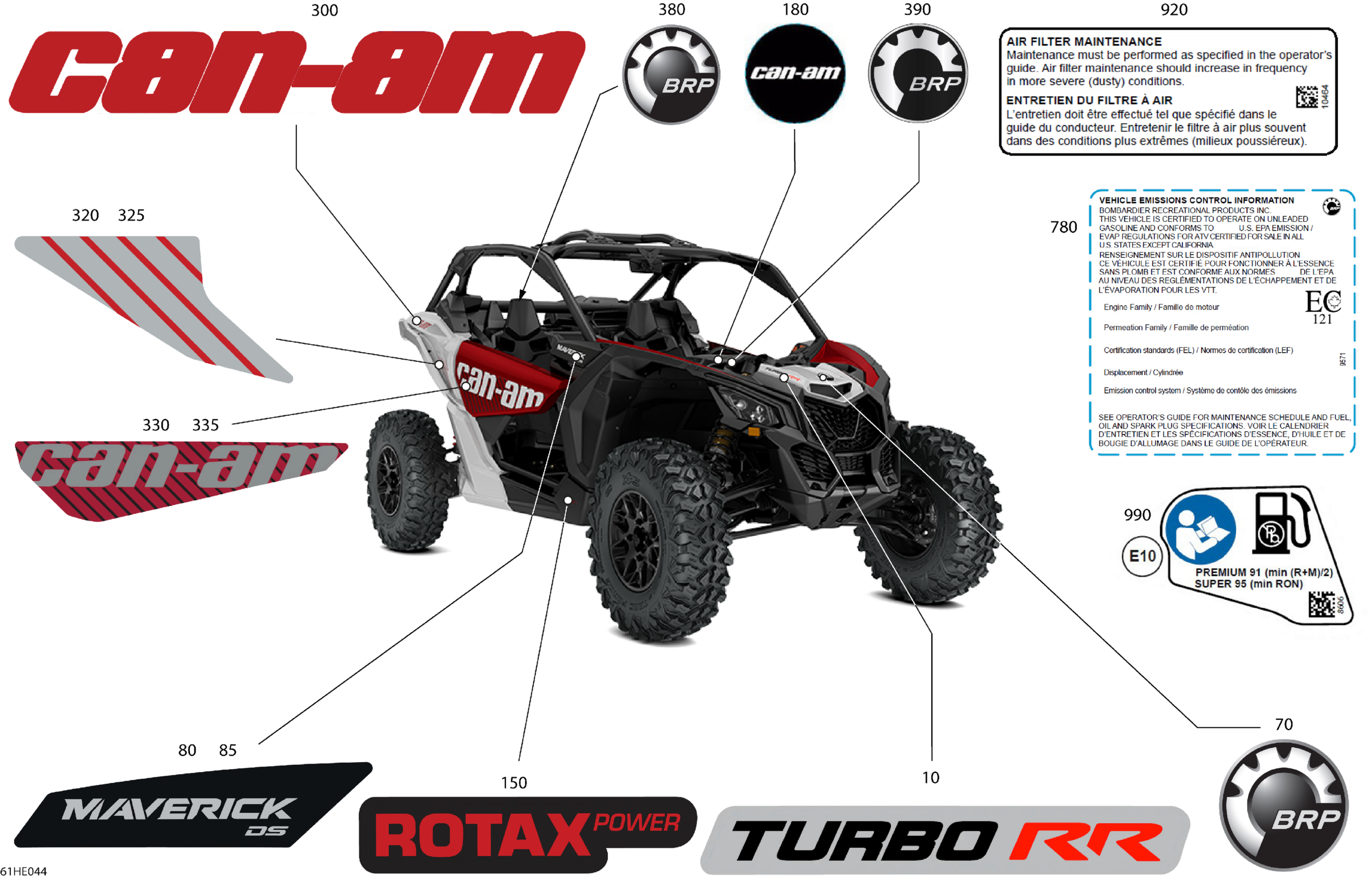 Can-Am Maverick - TURBO RR - DS - 7XSD - Fiery Red Metallic - 64" Width , 2025 Body - Decals Diagram