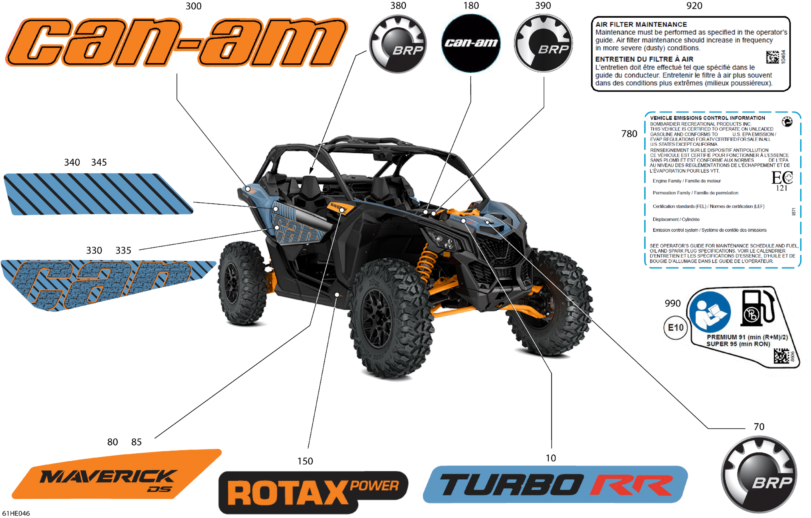 Can-Am Maverick - TURBO RR - DS - 7XSF - Scandi Blue - 64" Width , 2025 Body - Decals Diagram