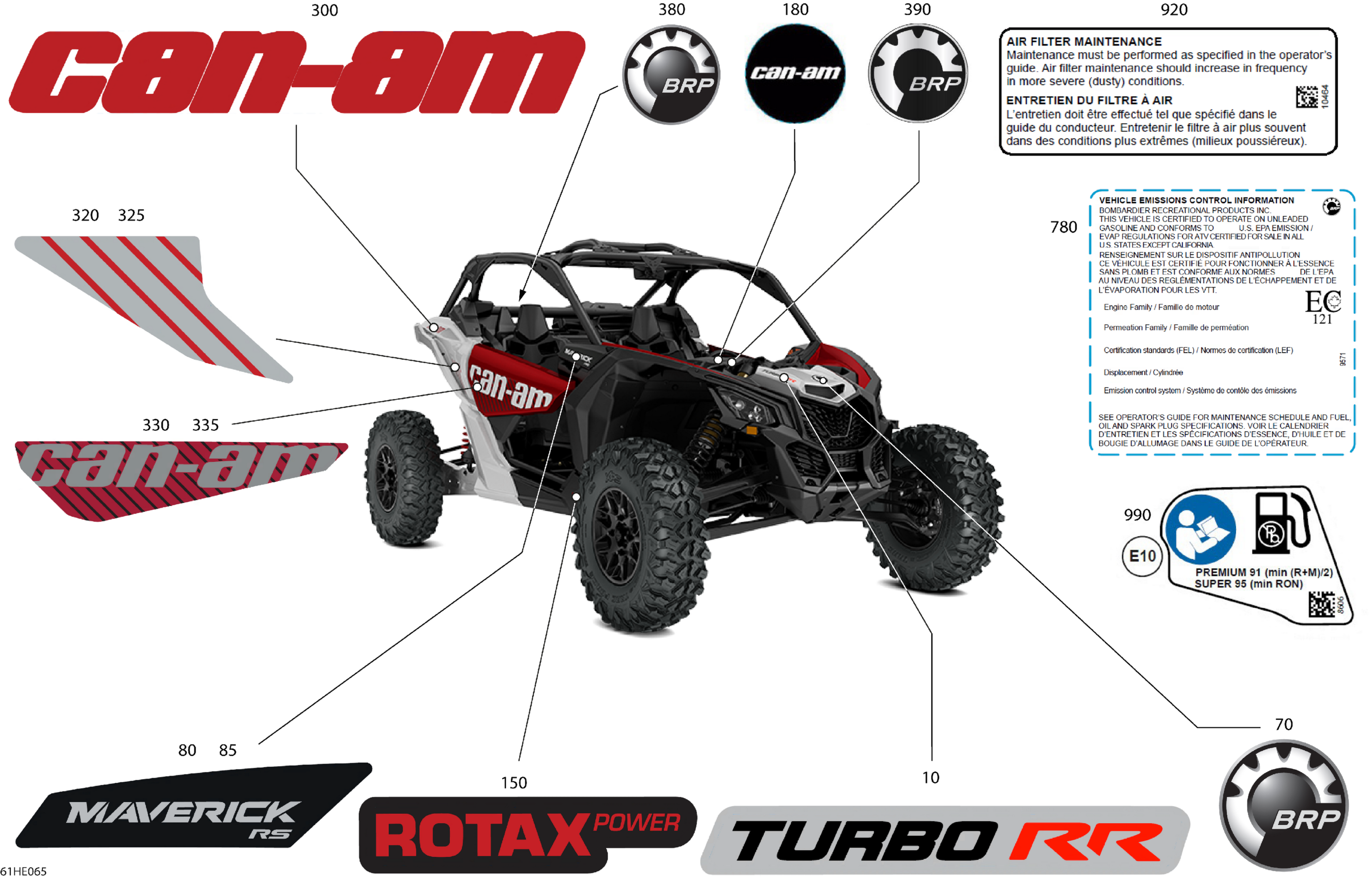 Can-Am Maverick - TURBO RR - RS - 9ESD - Fiery Red Metallic - 72" Width, 2025 Body - Decals Diagram