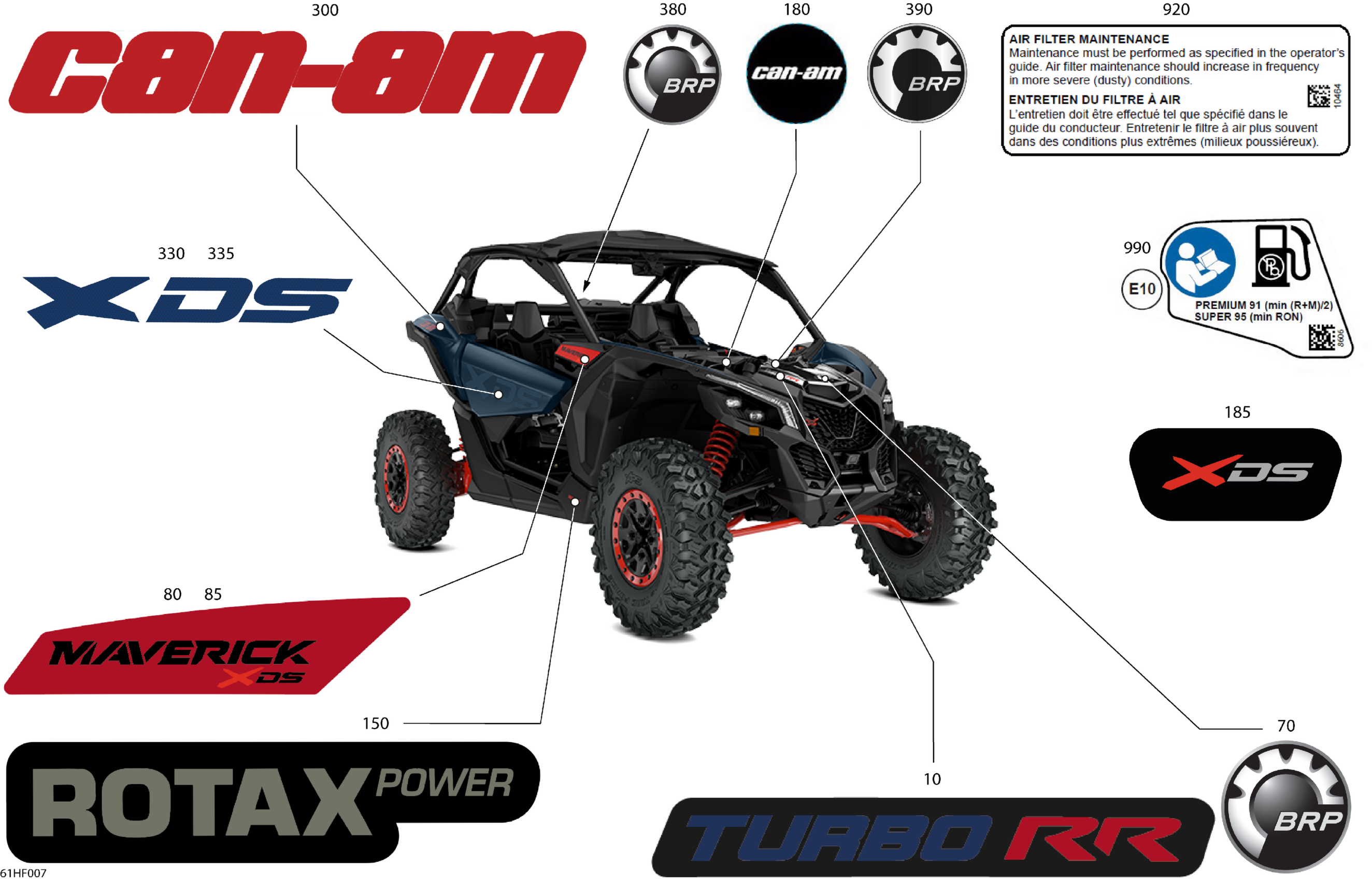 Can-Am Maverick - TURBO RR - XDS STD - 7STA - Dusty Navy Satin - 64" Width CALI, 2026 Body - Decals Diagram