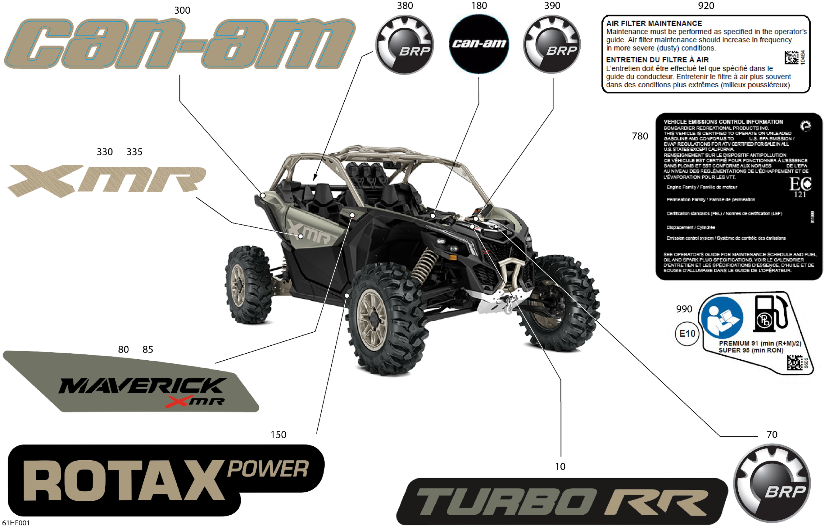 Can-Am Maverick - TURBO RR - XMR - 6VTB - Loft Green Satin - 64" Width, 2026 Body - Decals Diagram