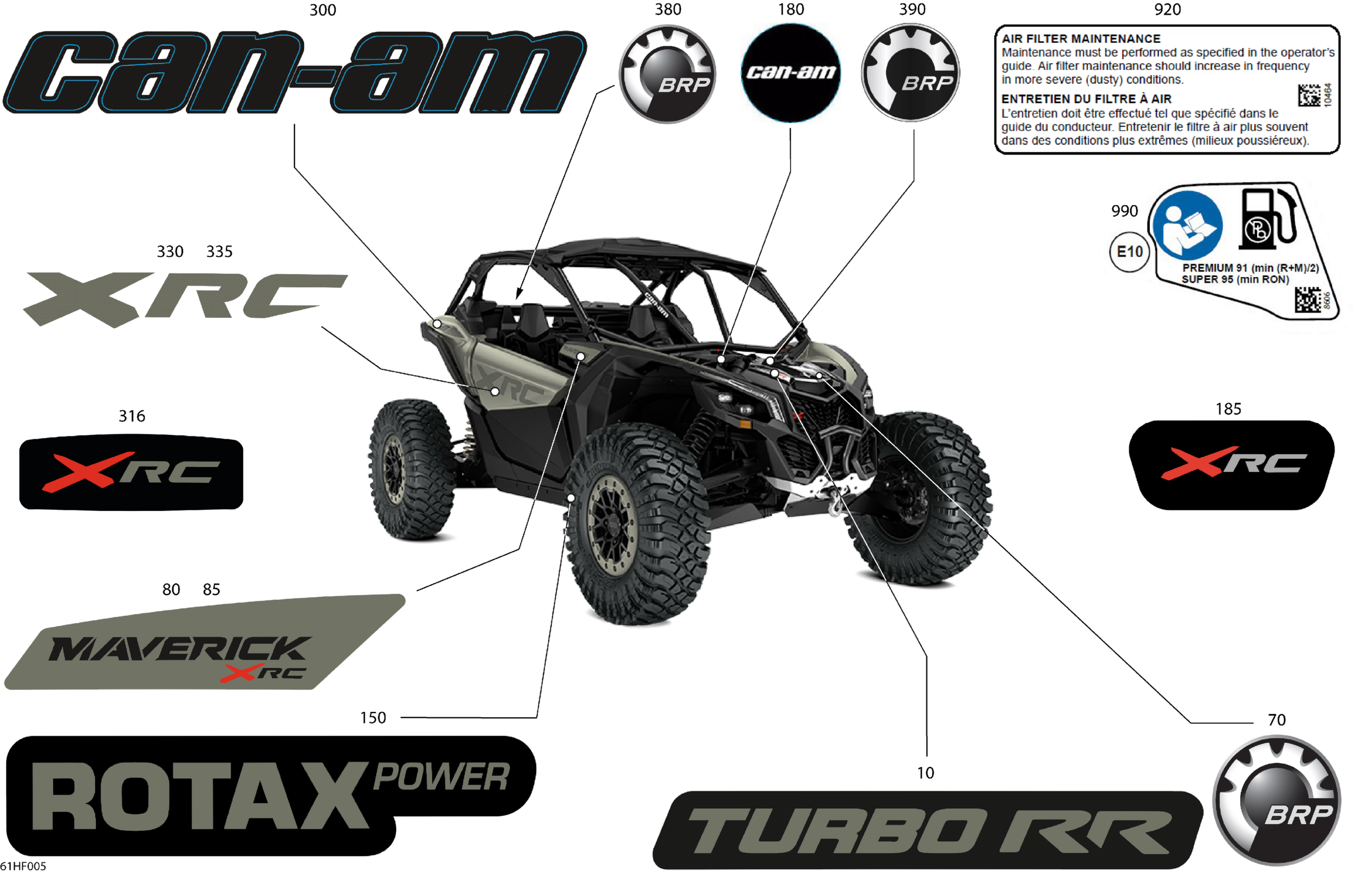 Can-Am Maverick - TURBO RR - XRC - 7KTH - Loft Green Satin - 64" Width CALI, 2026 Body - Decals Diagram