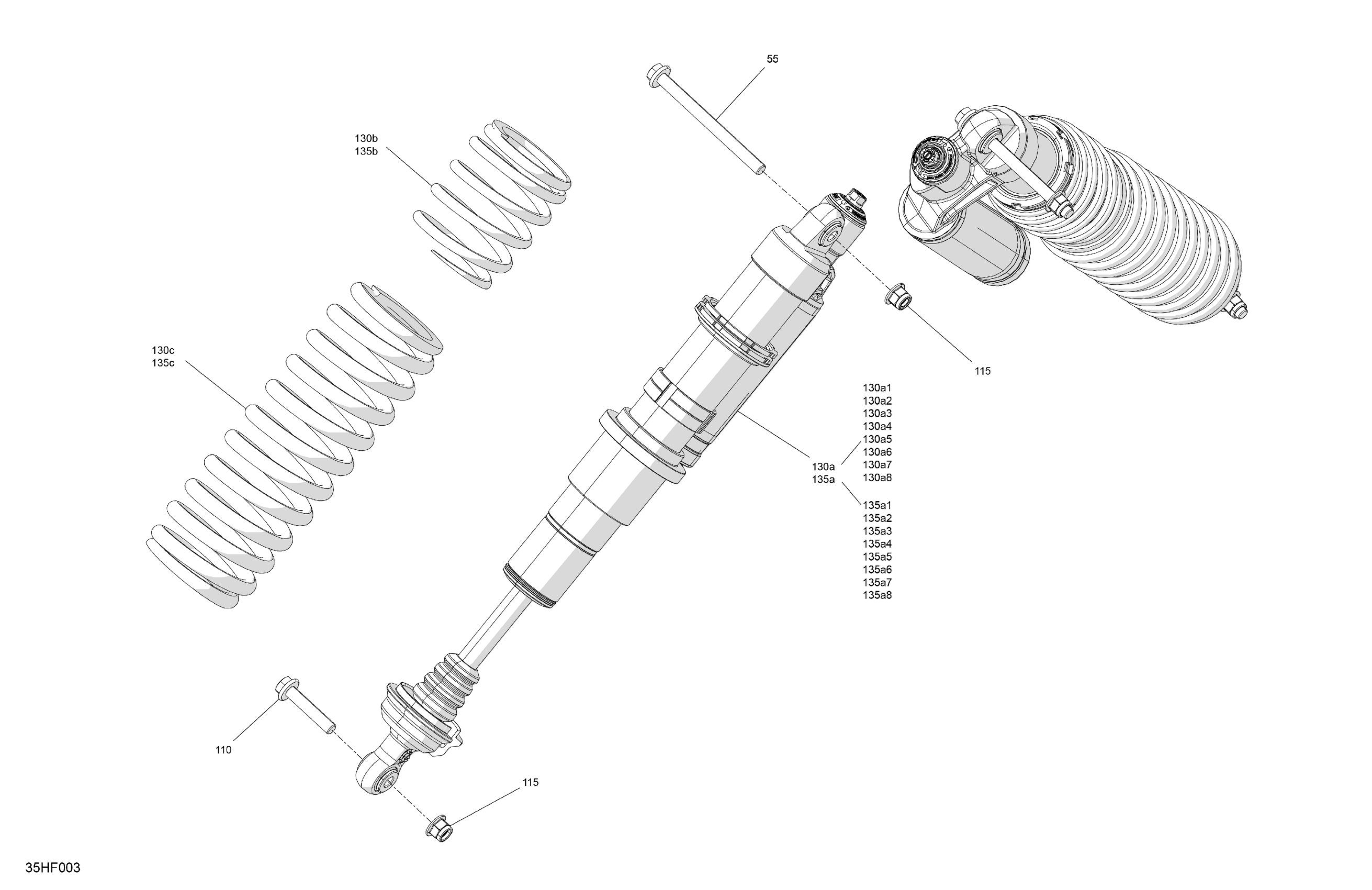 Can-Am Maverick - TURBO RR - XRC - 7KTM - Loft Green Satin - 64" Width, 2026 Suspension - Front Shocks Diagram
