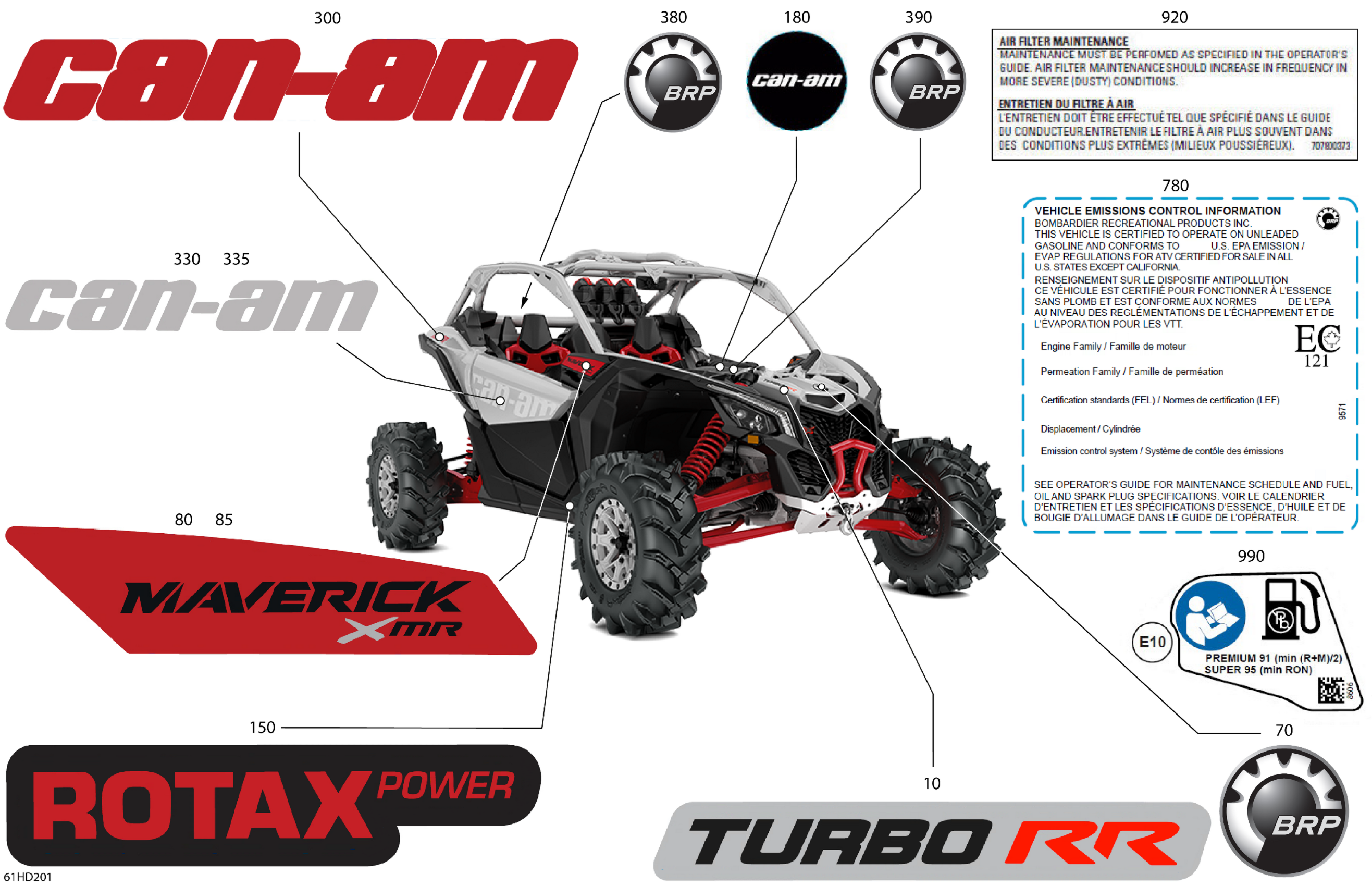 Can-Am Maverick Turbo RR - XRC - 9LRA - Hyper Silver - 72" Width, 2024 Body - Decals Diagram