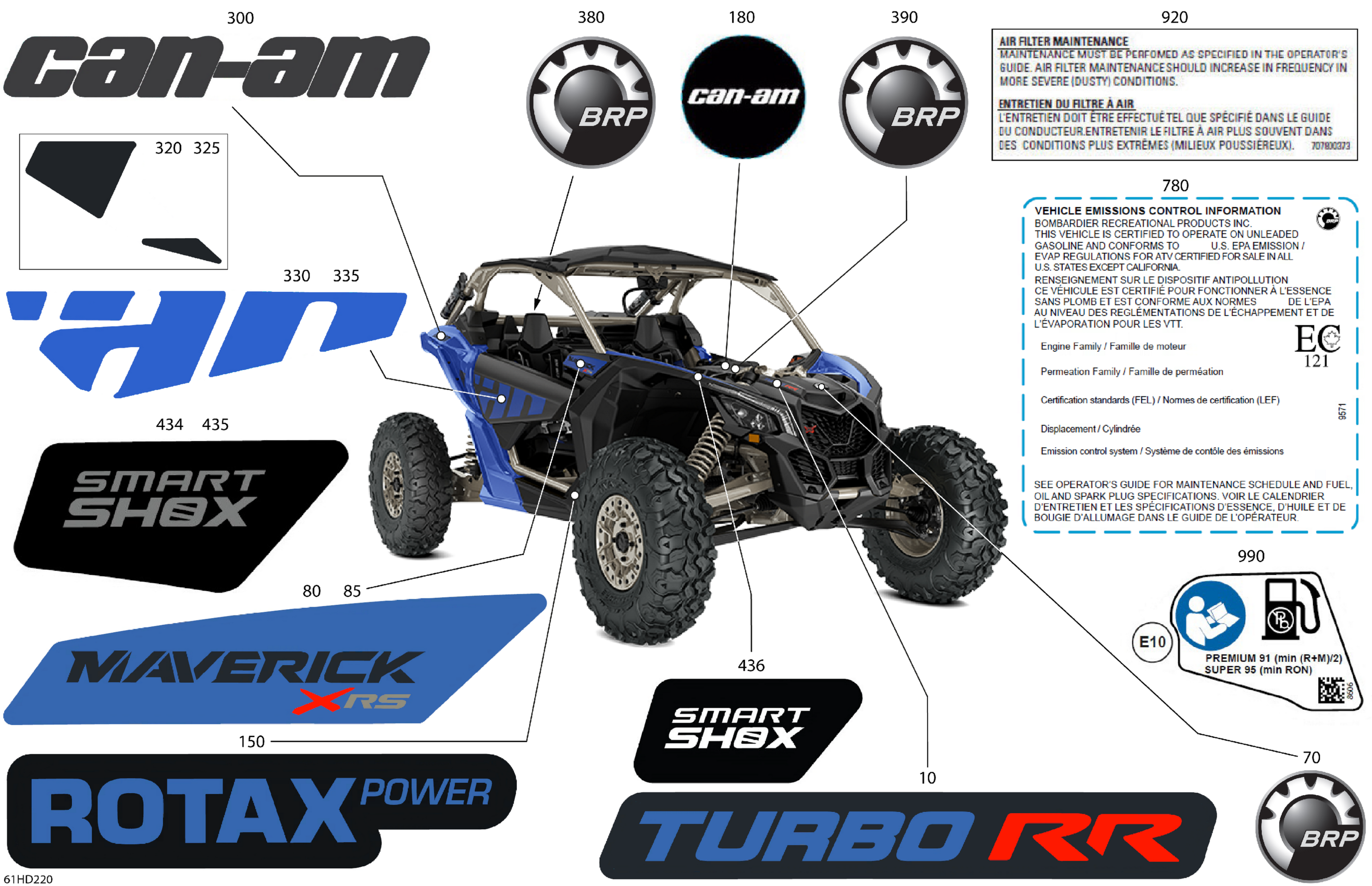 Can-Am Maverick Turbo RR - XRS Smart Shock - 7TRM - Dazzling Blue - 72" Width SAS, 2024 Body - Decals Diagram