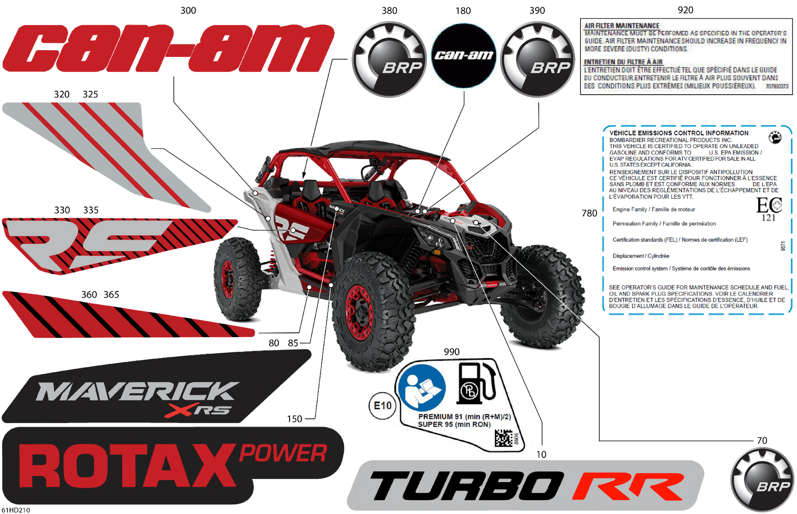 Can-Am Maverick Turbo RR - XRS STD - 7TRB - Fiery Red Metallic - 72" Width, 2024 Body - Decals Diagram