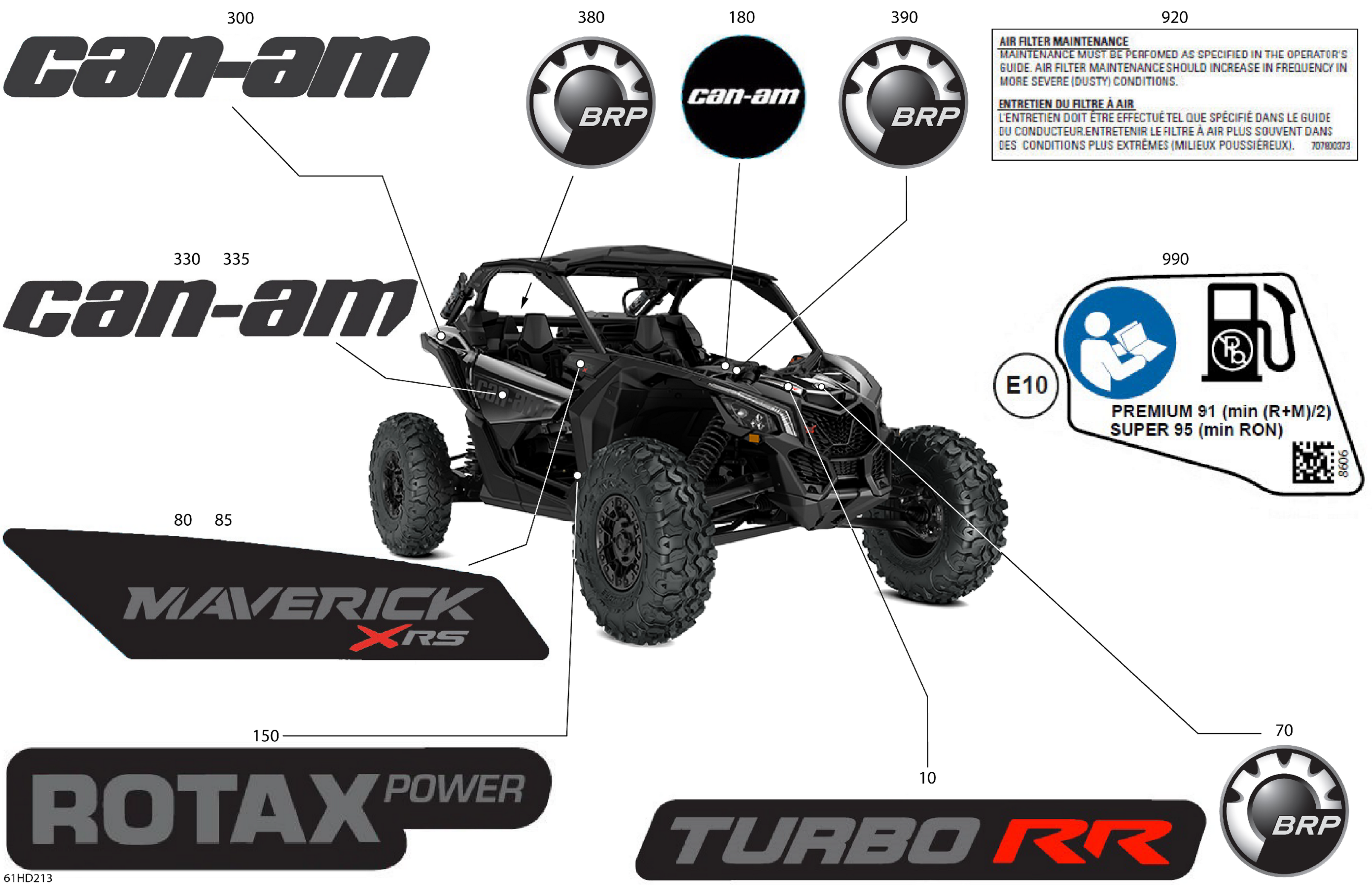 Can-Am Maverick Turbo RR - XRS STD - 7TRE - Timeless Black Metallic - 72" Width CALI, 2024 Body - Decals Diagram