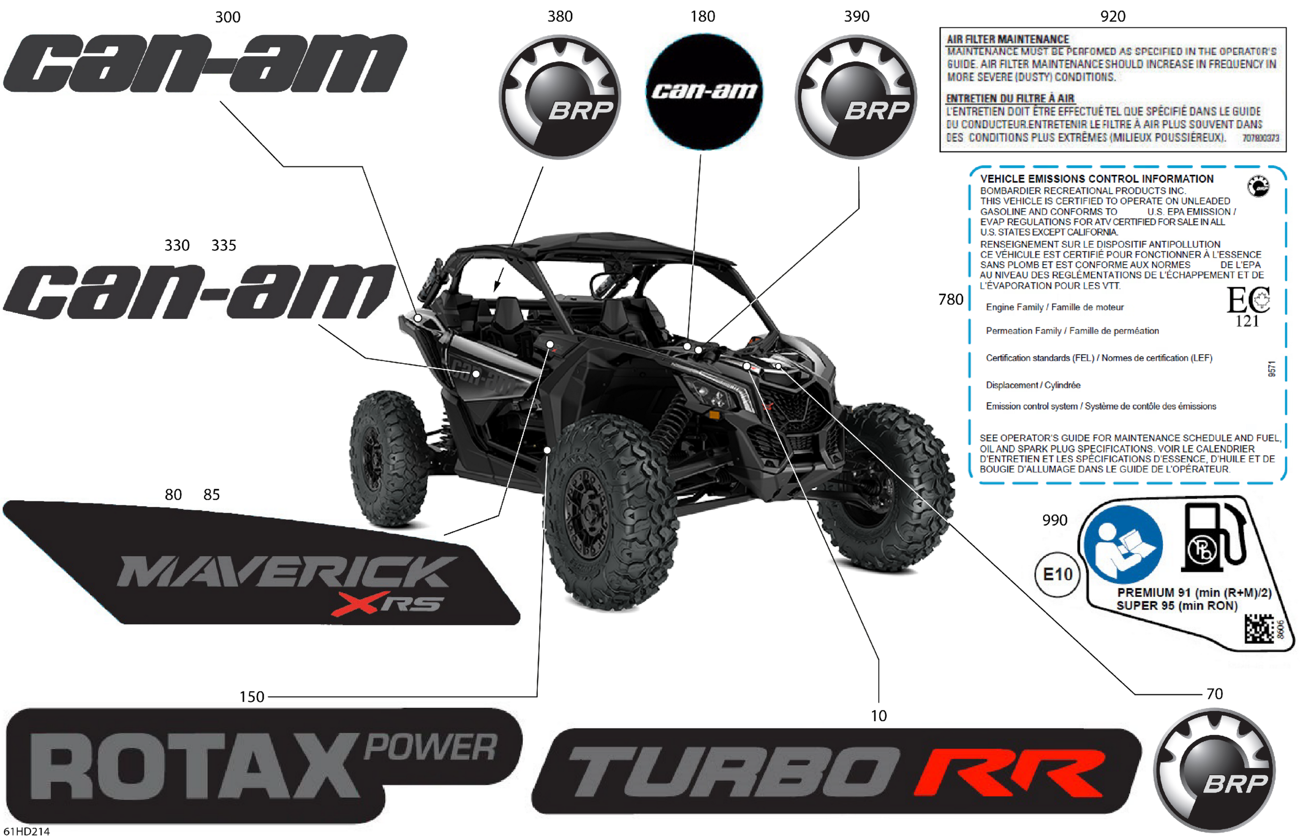 Can-Am Maverick Turbo RR - XRS STD - 7TRF - Timeless Black Metallic - 72" Width, 2024 Body - Decals Diagram