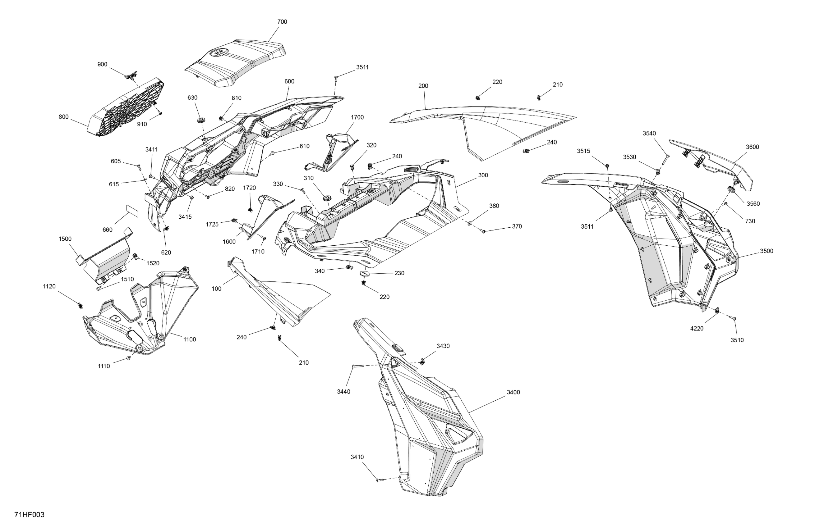 Can-Am Maverick - TURBO RR - XRS STD - 7TTP - Dusty Navy Satin - 72" Width CALI, 2026 Body - Front Section Diagram