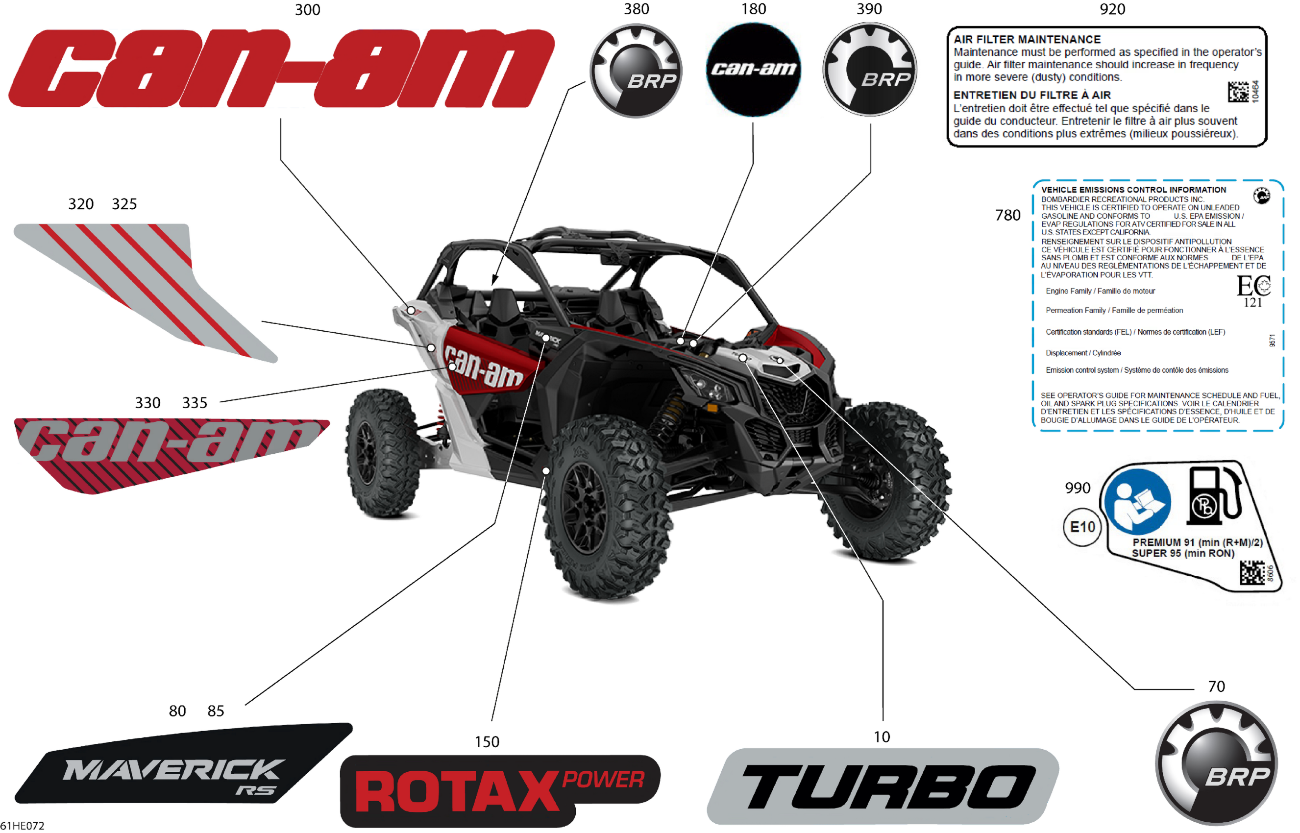 Can-Am Maverick - TURBO - RS - 9ESL - Fiery Red Metallic - 72" Width CALI, 2025 Body - Decals Diagram