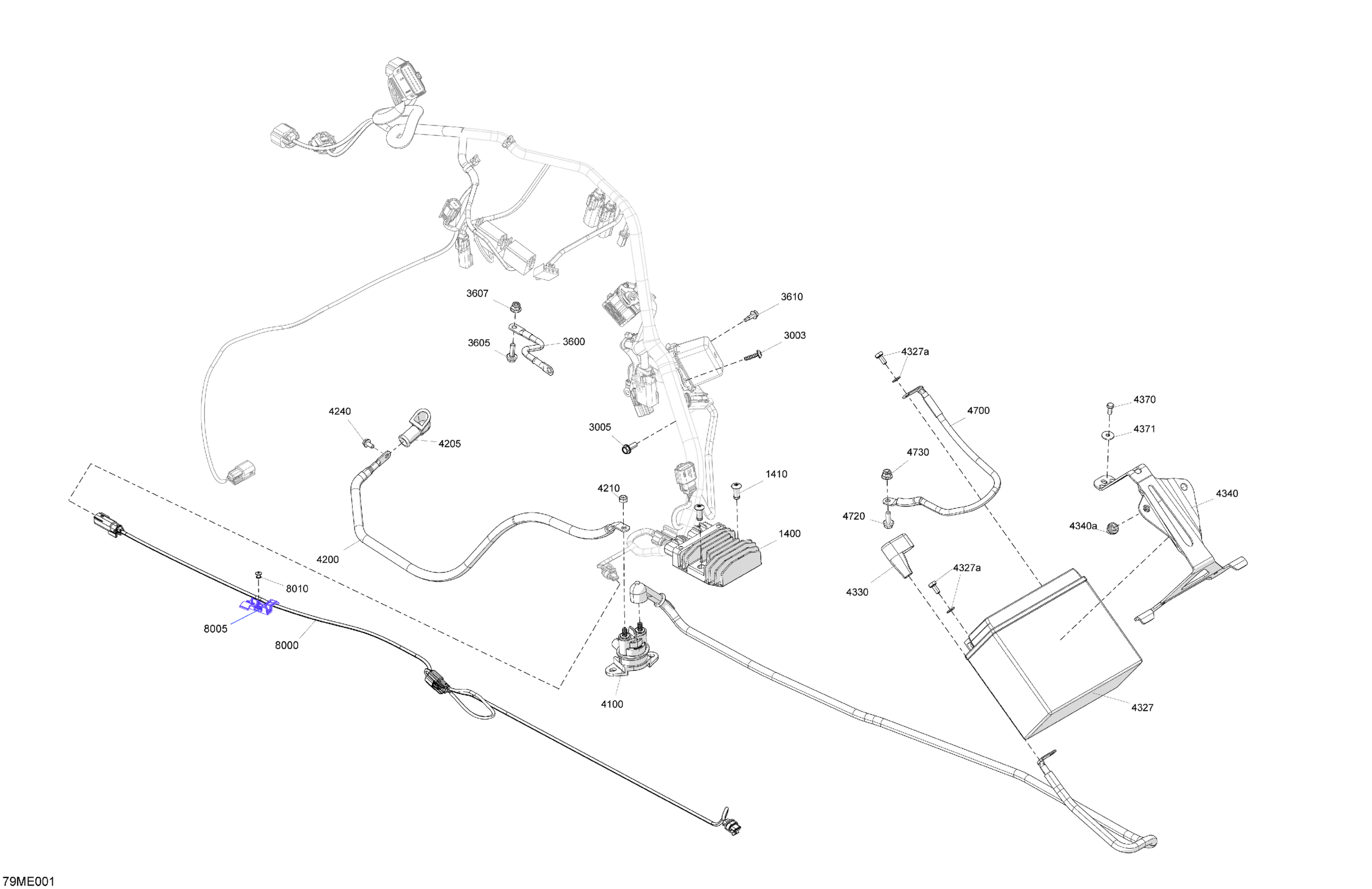 Ski-Doo North America - MXZ - 600 EFI - 45 - NEO - BBSA - Catalyst Gray - 120X14X1.0C Track - 2025 08- Electric - Lower Section Diagram