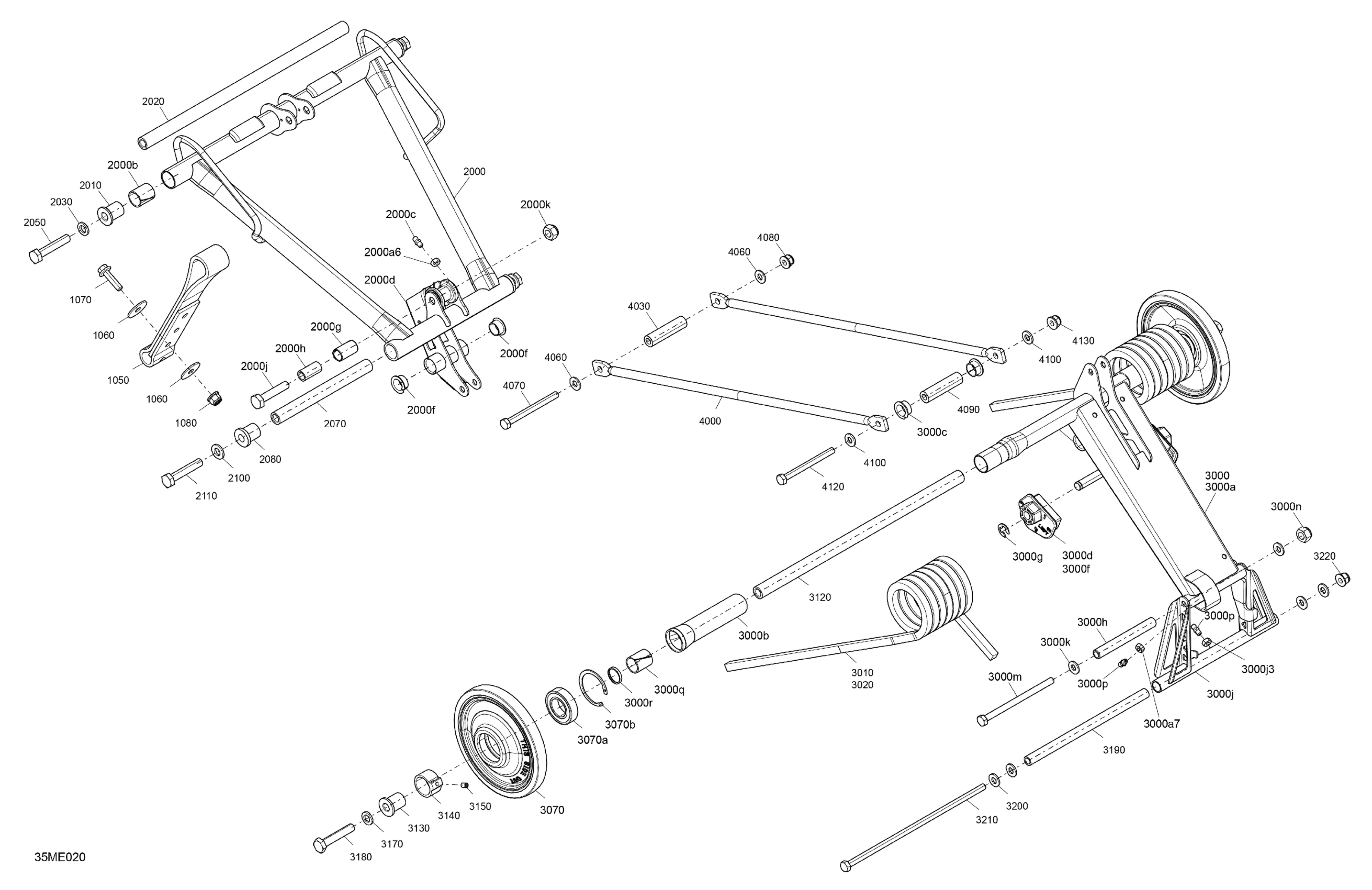 Ski-Doo North America - MXZ - 600 EFI - SPORT - BHSA - Neo Yellow - 137X15X1.25RS Track - 2025 05- Suspension - Rear - Upper Section Diagram