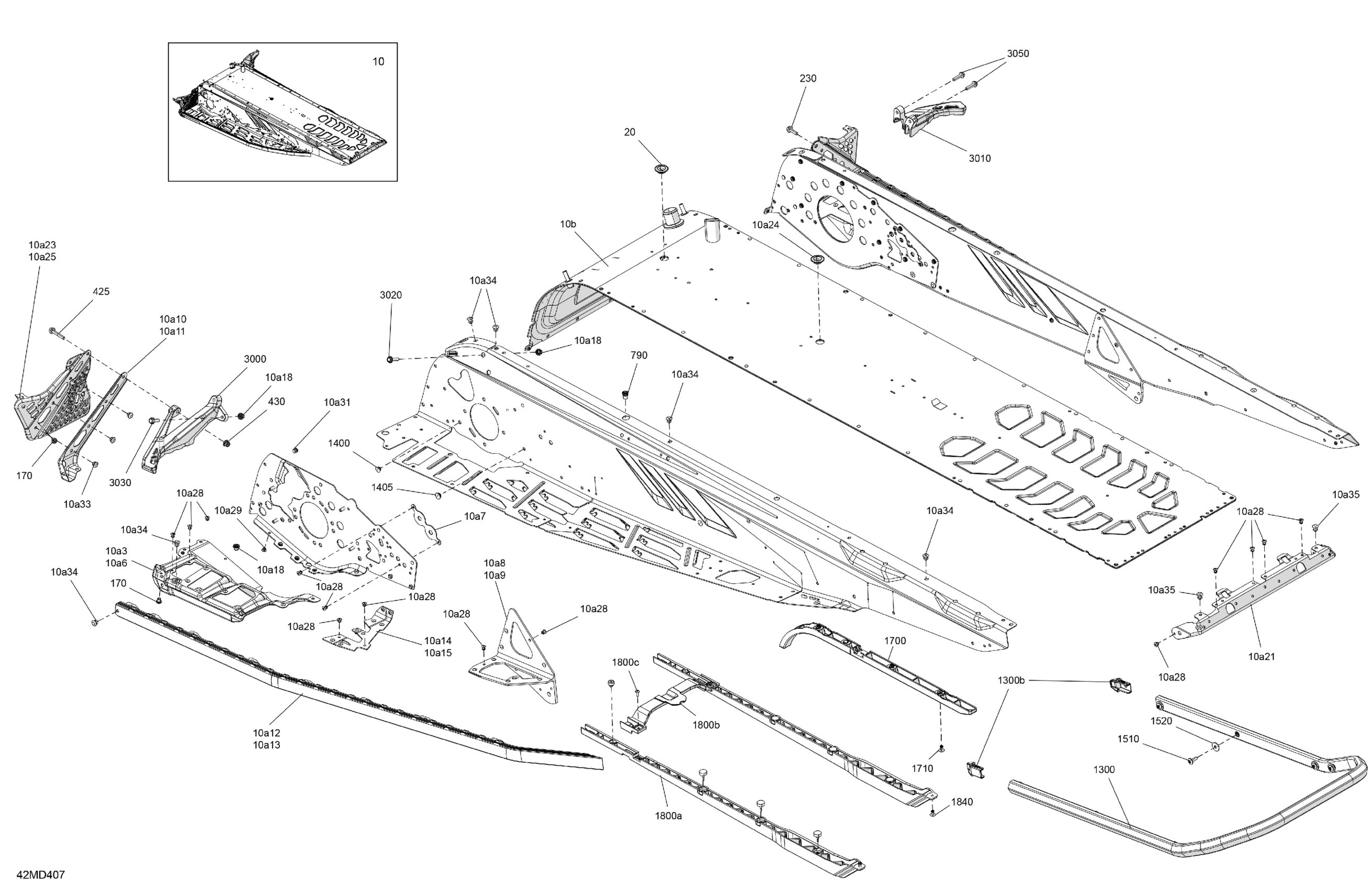 Ski-Doo North America - MXZ 600R E-TEC - Adrenaline with Blizzard Package - UERA - Deep Black - 129X15X1.25IR Track, 2024 06- Frame - System - Rear Section Diagram