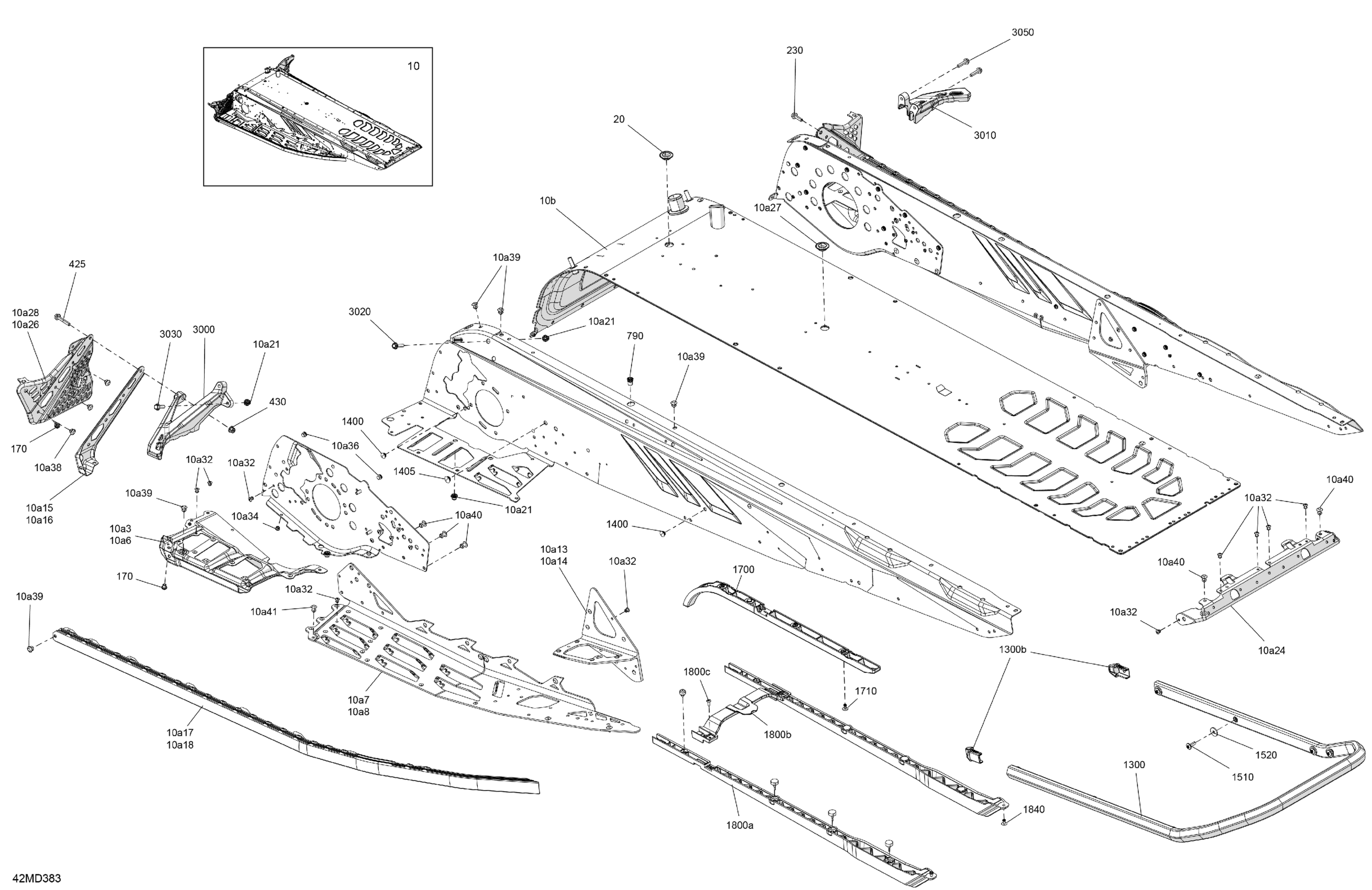 Ski-Doo North America - MXZ 600R E-TEC - X-RS - MZRJ - Deep Black - 137X15X1.5IR Track, 2024 06- Frame - System - Rear Section Diagram