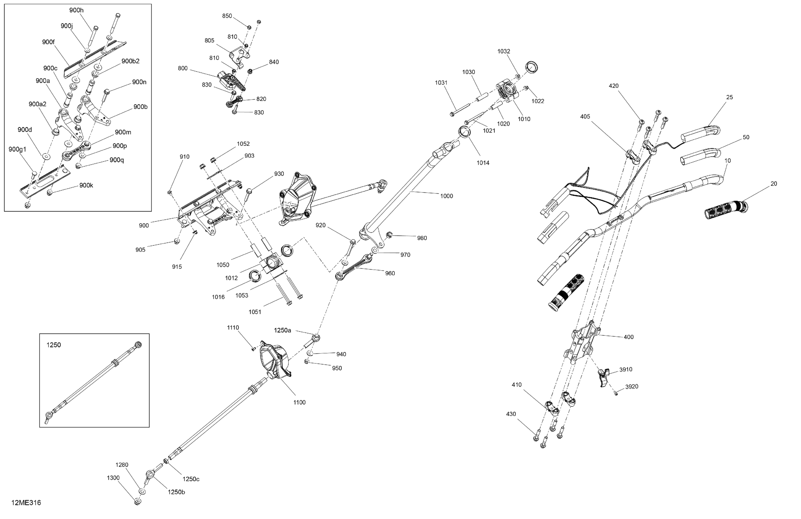 Ski-Doo North America - MXZ - 600R E -TEC - X-RS - MZSC - Deep Black - 137X15X1.5IR Track - 2025 03- Mechanic - Steering Diagram