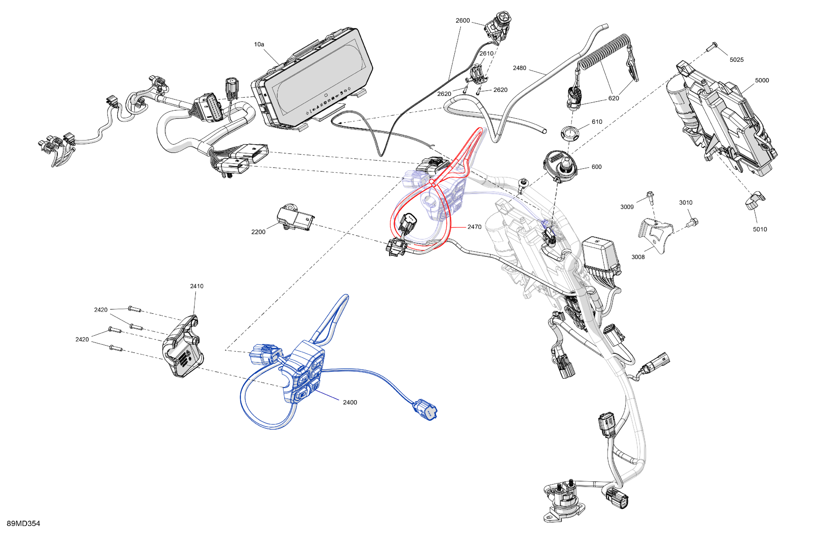 Ski-Doo North America - MXZ 600R E-TEC - X-RS with Competition package - UCRA - Neo Yellow - 137X15X1.25RSII2P Track, 2024 08- Electric - Upper Section Diagram
