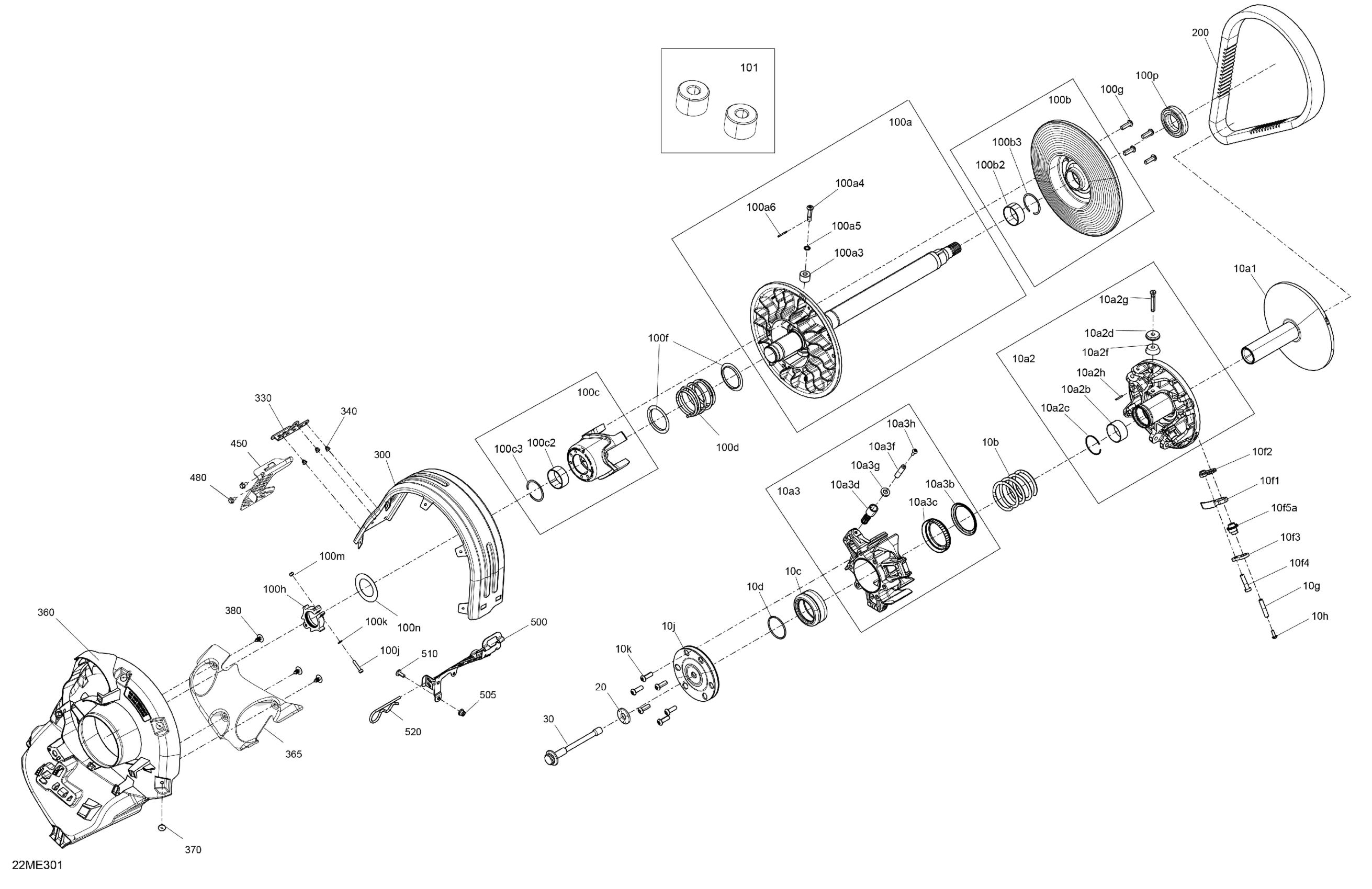 Ski-Doo North America - MXZ - 850 E-TEC - Adrenaline - BDSA - Neo Yellow - 137X15X1.25RS Track - 2025 04- Drive - Pulley Diagram
