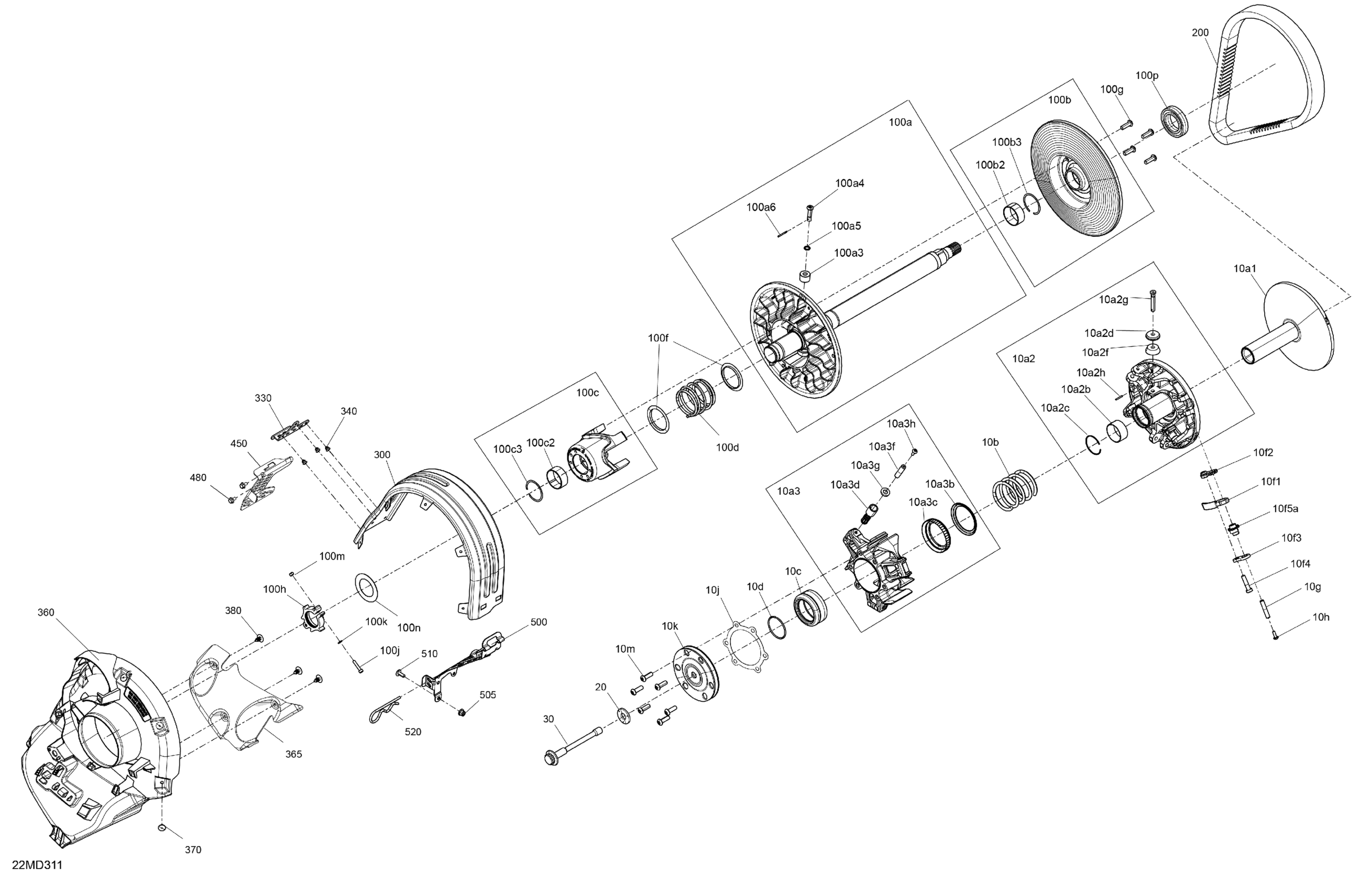 Ski-Doo North America - MXZ 850 E-TEC Turbo R - X-RS with Competition package - UCRC - Neo Yellow - 137X15X1.25RSII2P Track, 2024 04- Drive - Pulley Diagram