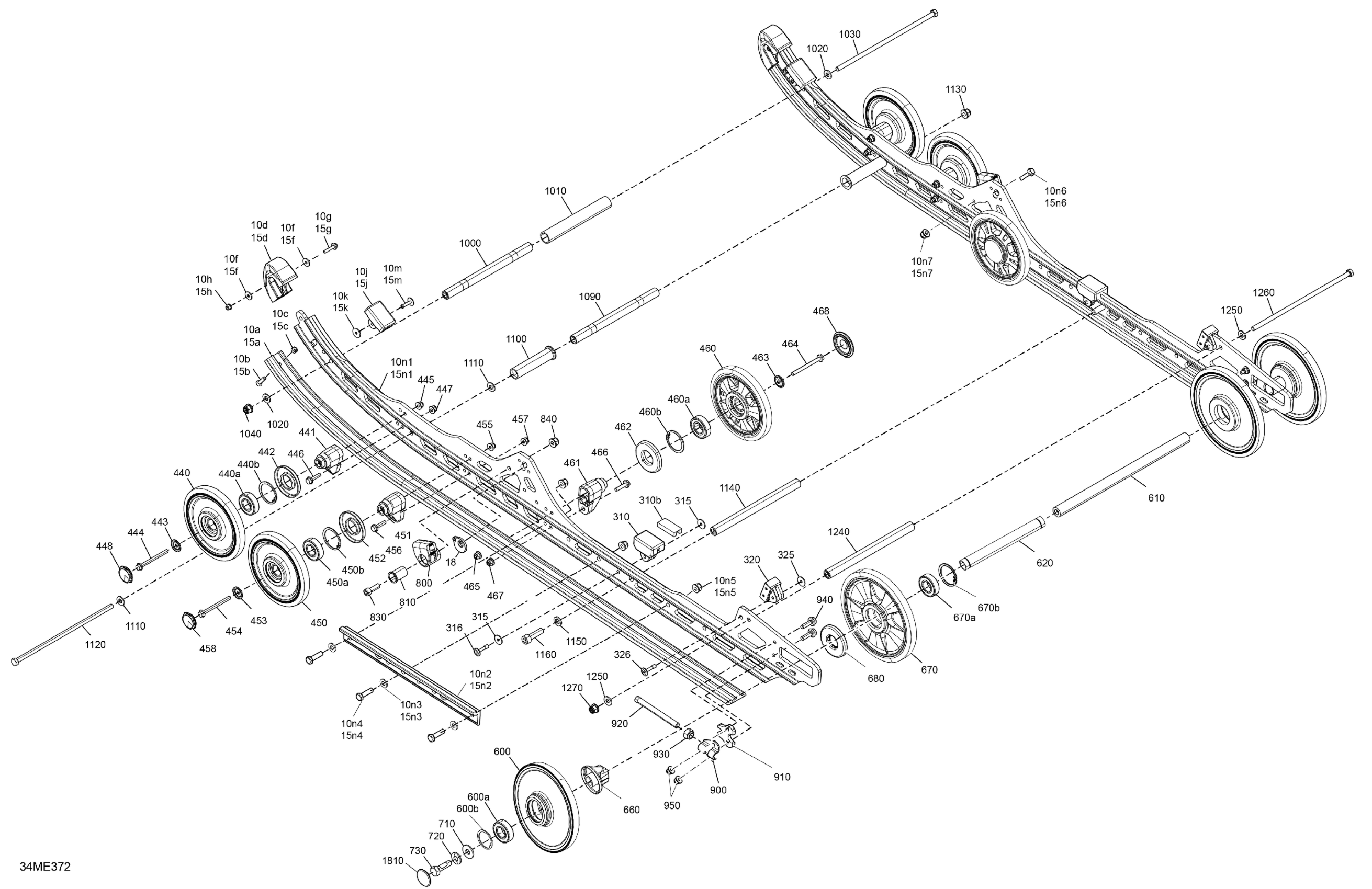 Ski-Doo North America - MXZ - 850 E-TEC Turbo R - X-RS with Competition package - UCSB - Deep Black - 137X15X1.25RSII2P Track - 2025 05- Suspension - Rear - Lower Section Diagram