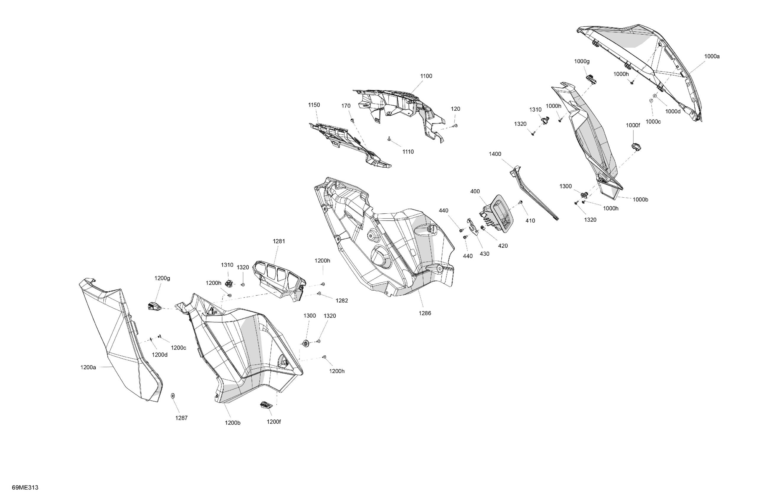 Ski-Doo North America - MXZ - 850 E-TEC Turbo R - X-RS with Competition package - UCSB - Deep Black - 137X15X1.25RSII2P Track - 2025 07- Body - Side Panels Diagram