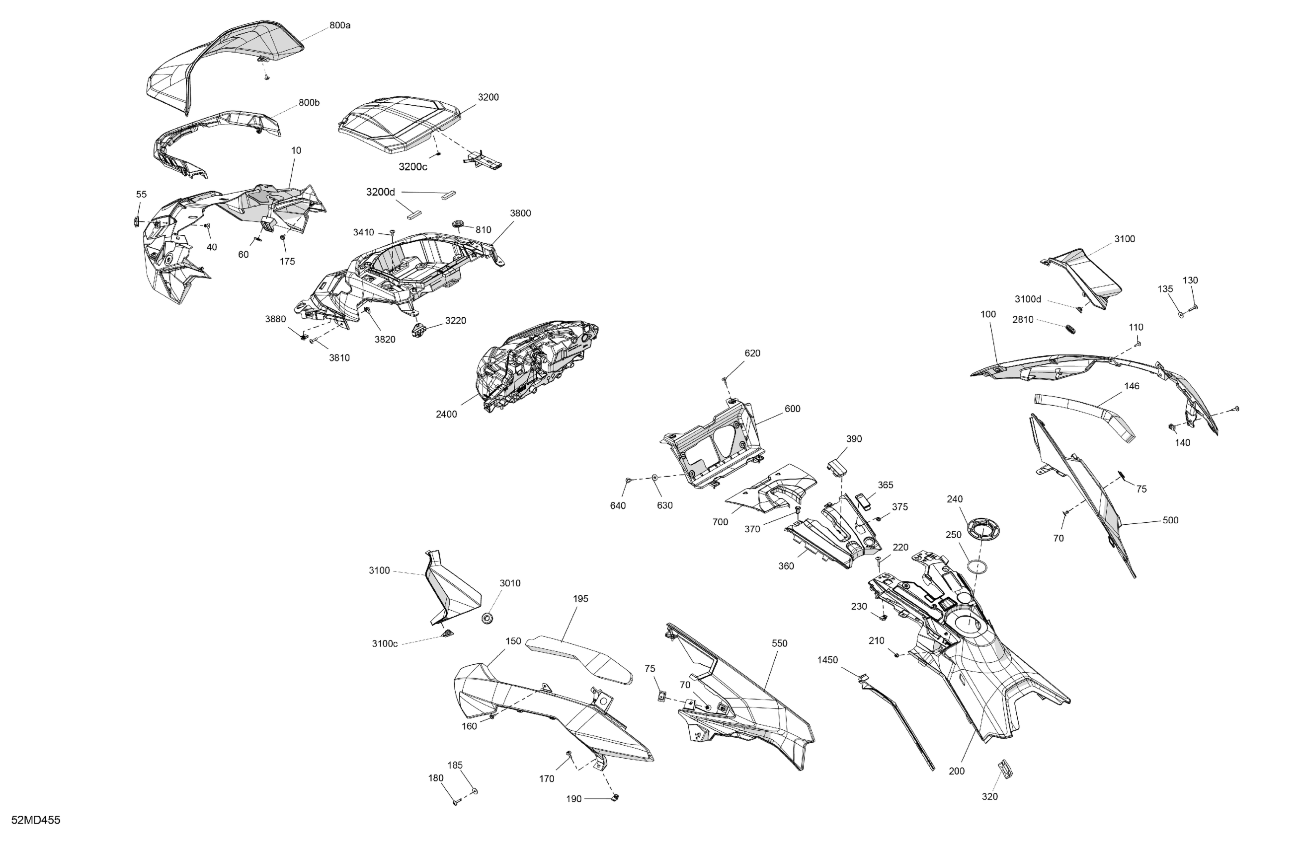 Ski-Doo North America - MXZ 850 E-TEC - X - UPRH - Neo Yellow - 137X15X1.25RS Track, 2024 07- Body - Hood Diagram