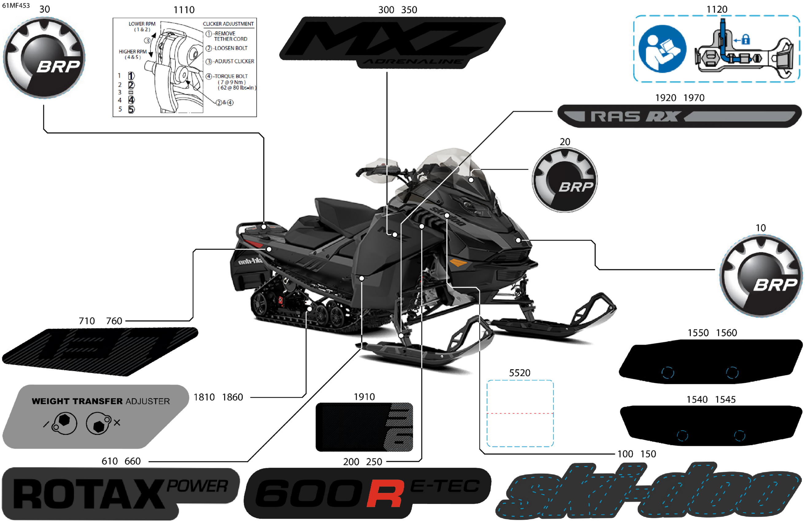 Ski-Doo North America - MXZ - Adrenaline - 600R E -TEC - BDTF - Deep Black - 15X137X1.25RS Track, 2026 07- Body - Decals Diagram