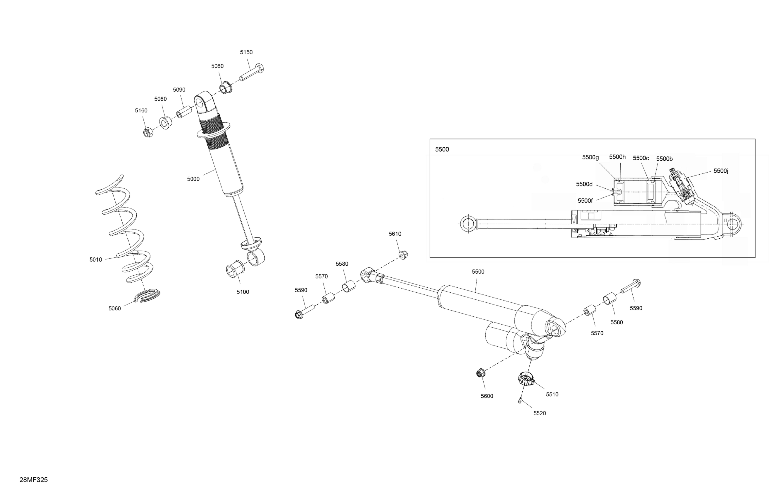 Ski-Doo MXZ - Adrenaline with Blizzard Package - 600R E -TEC - UETA - Monument Gray - 15X137X1.25IR Track, 2026 Suspension - Rear Shocks Diagram