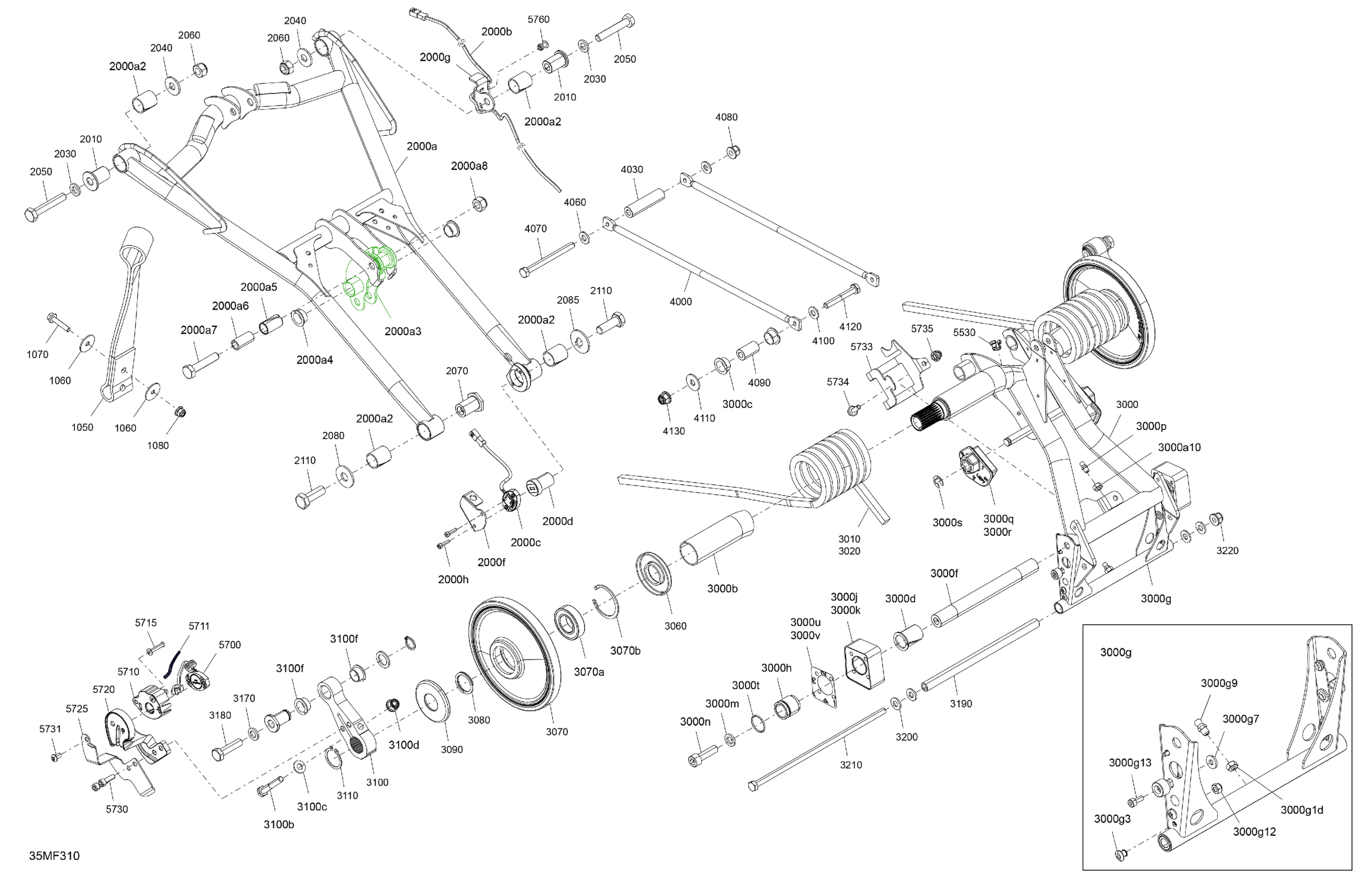 Ski-Doo North America - MXZ - X-RS - 600R E -TEC - MZTB - Deep Black - 15X129X1.5IR Track, 2026 05- Suspension - Rear - Upper Section Diagram