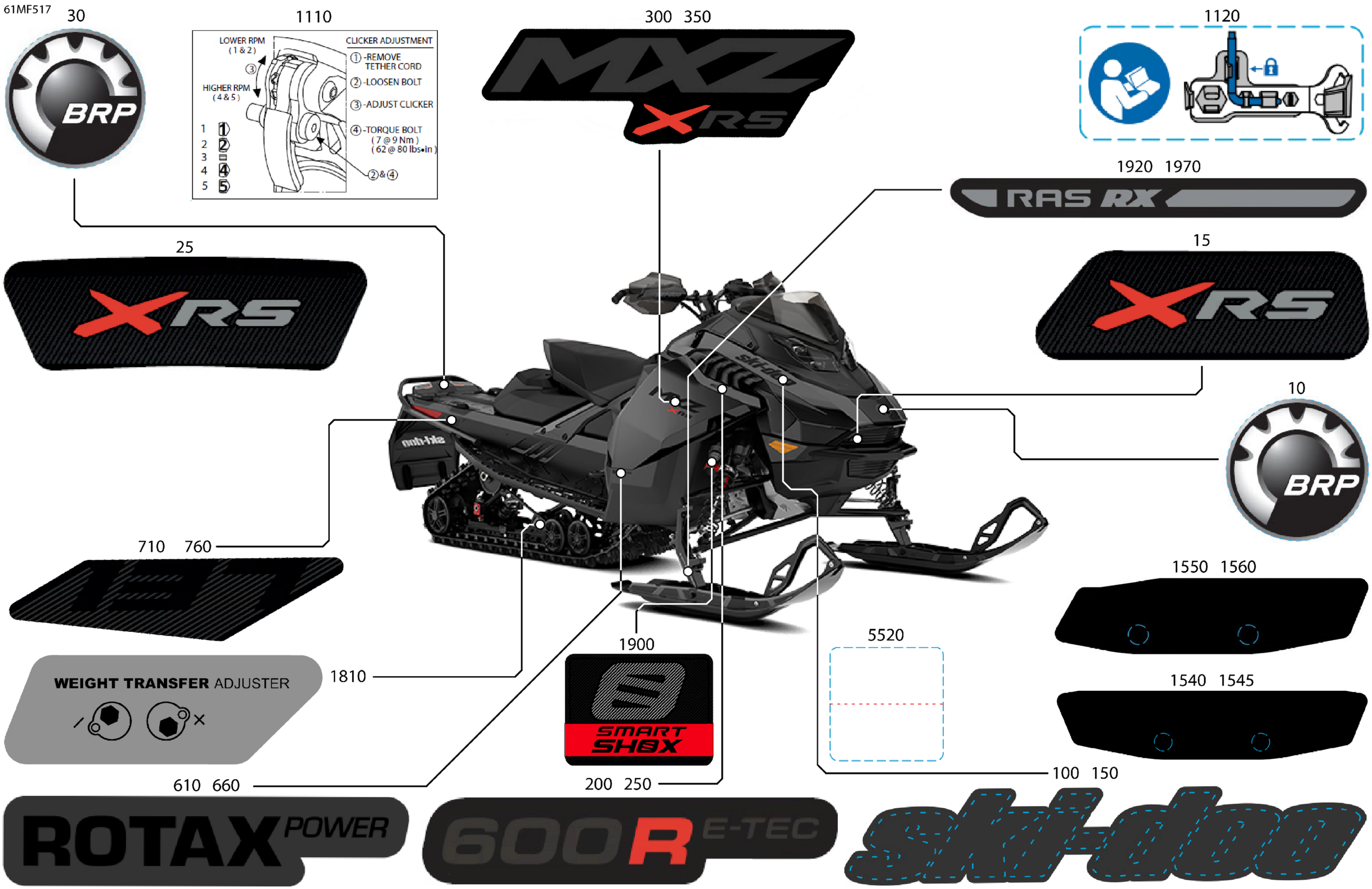 Ski-Doo North America - MXZ - X-RS - 600R E -TEC - MZTE - Deep Black - 15X137X1.5IR Track, 2026 07- Body - Decals Diagram