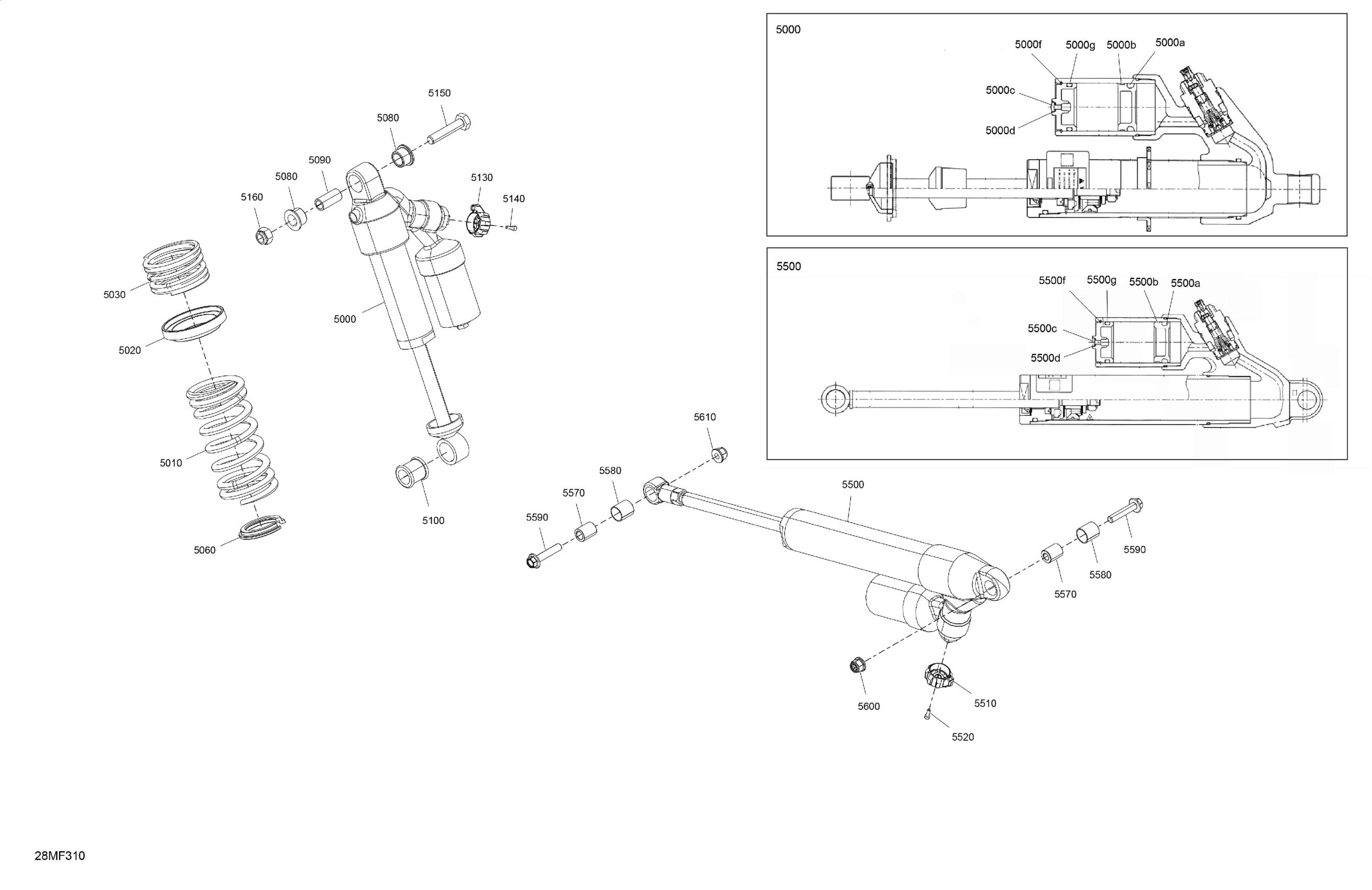 Ski-Doo North America - MXZ - X-RS - 600R E -TEC - MZTF - Mineral Blue - 15X137X1.25IR Track, 2026 05- Suspension - Rear Shocks Diagram