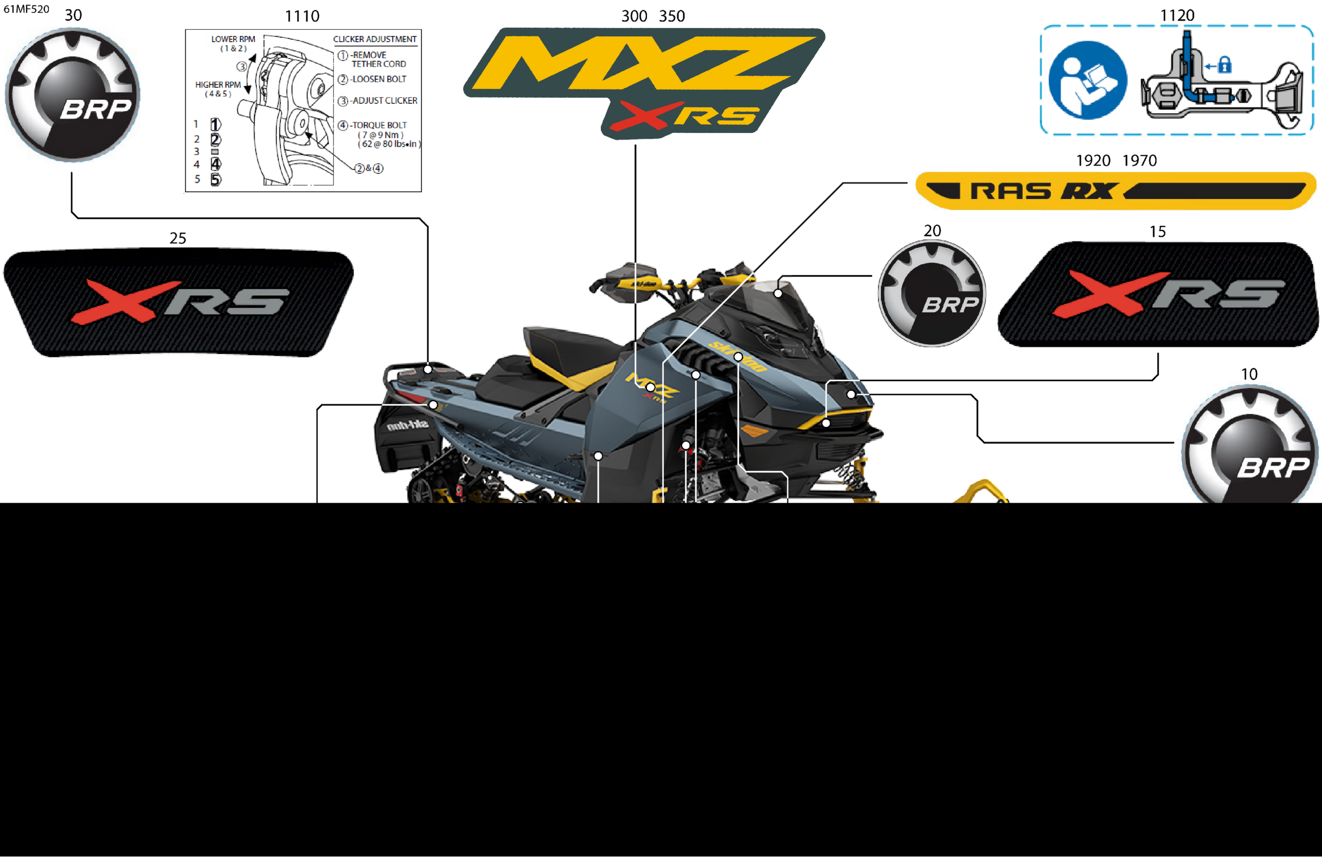 Ski-Doo North America - MXZ - X-RS - 600R E -TEC - MZTN - Mineral Blue - 15X129X1.5IR Track, 2026 07- Body - Decals Diagram