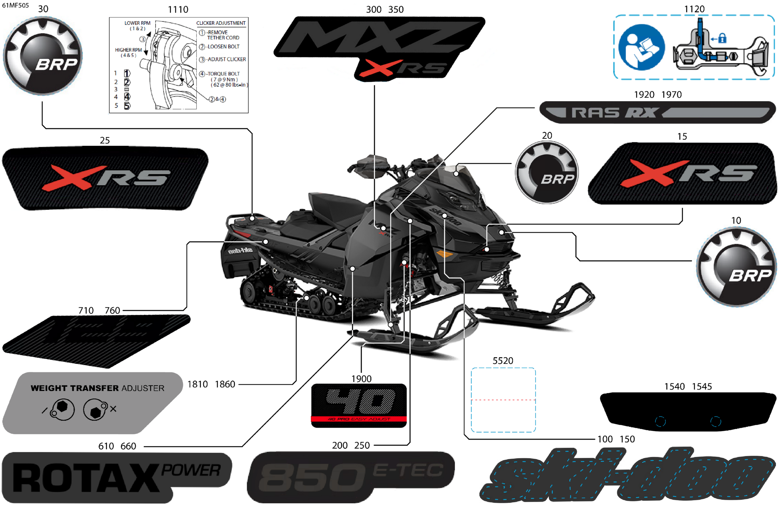 Ski-Doo North America - MXZ - X-RS - 850 E-TEC - MXTB - Deep Black - 15X129X1.5IR Track, 2026 07- Body - Decals Diagram