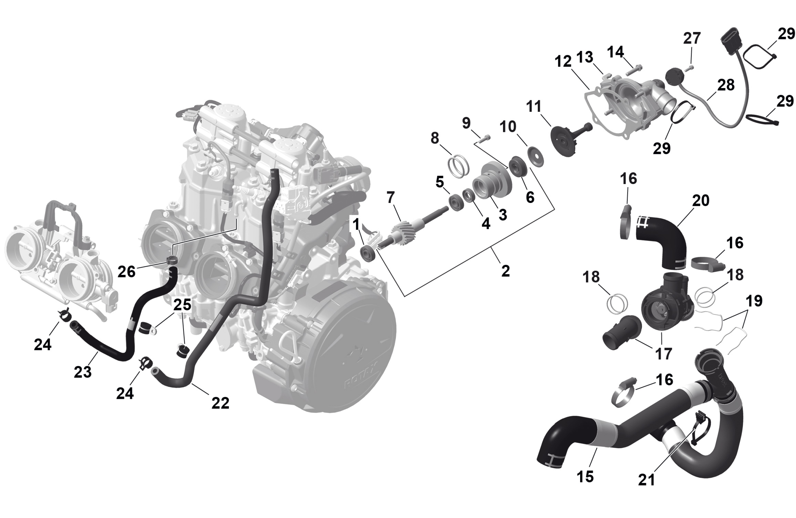 Ski-Doo MXZ - X-RS with Competition package - 600R E -TEC - UCTG - Mineral Blue - 15X137X1.25RSII2P Track, 2026 ROTAX - Engine Cooling Diagram