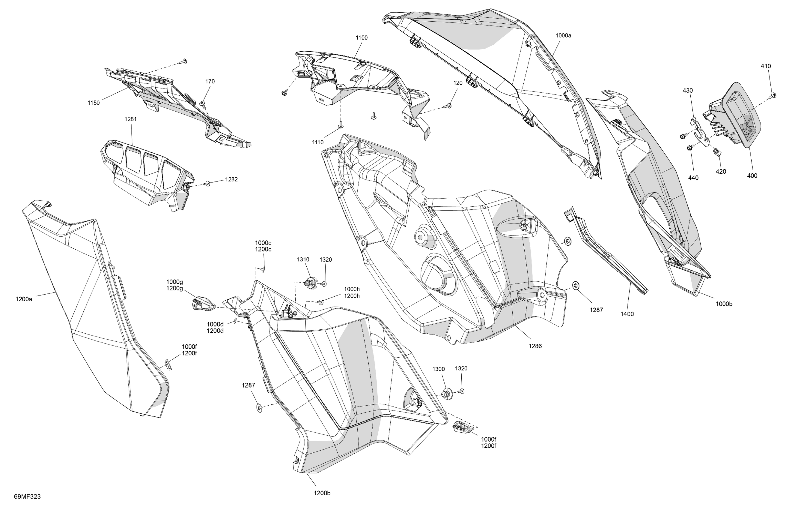 Ski-Doo North America - MXZ - X-RS with Competition package - 600R E -TEC - UCTG - Mineral Blue - 15X137X1.25RSII2P Track, 2026 07- Body - Side Panels Diagram