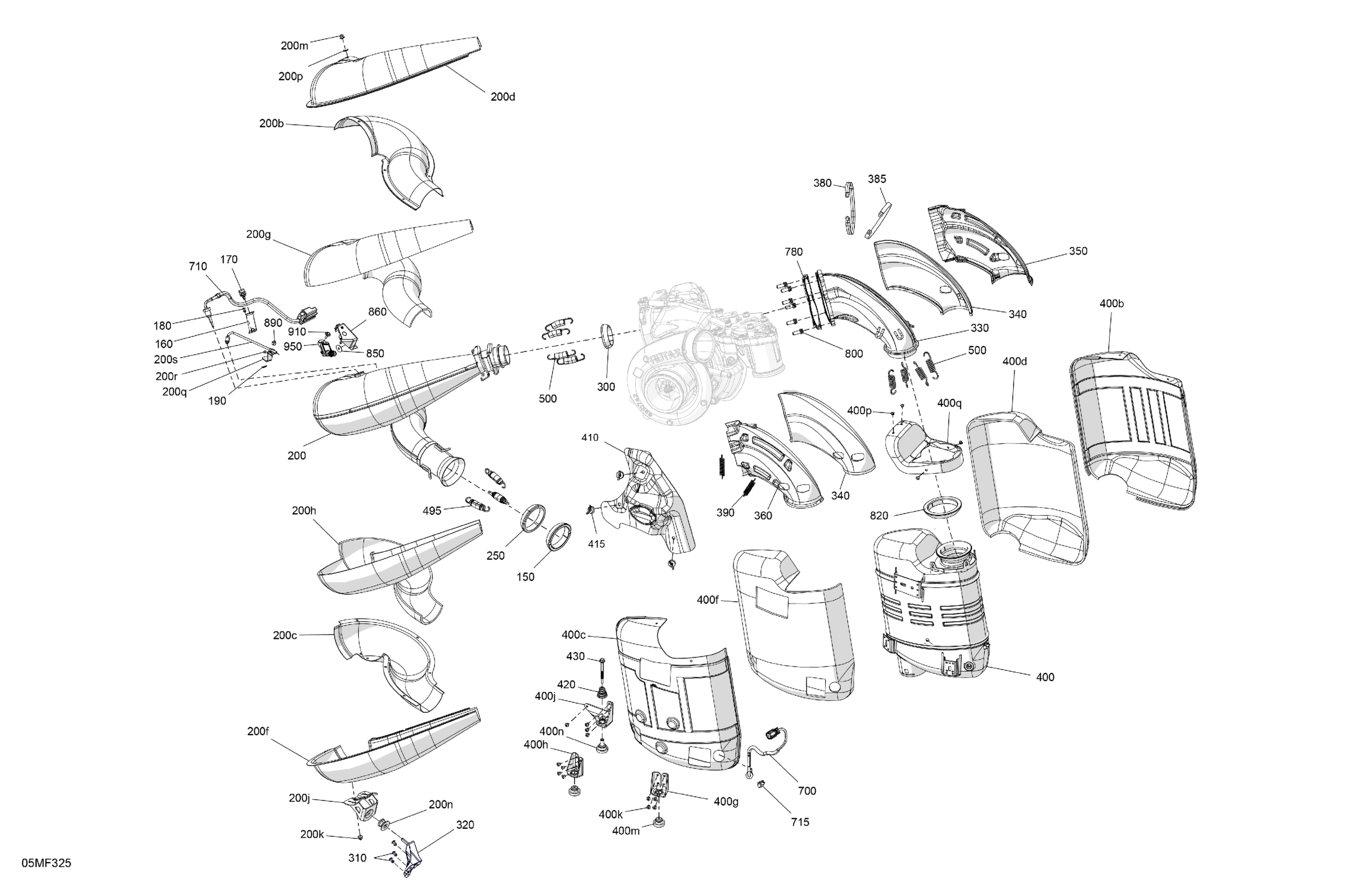 Ski-Doo North America - MXZ - X-RS with Competition package - 850 E-TEC Turbo R - UCTB - Mineral Blue - 15X137X1.25RSII2P Track, 2026 02- Engine - Exhaust Diagram